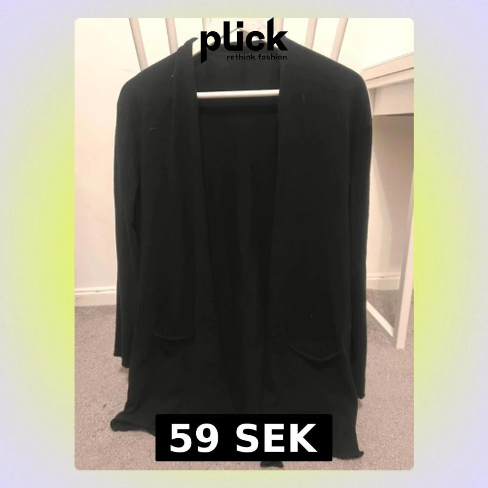 Svart lång cardigan jacka med öppen front och två fickor framtill. Jackan har en enkel och stilren design med långärmade ärmar och mjukt material som ger en skön känsla. Perfekt för lager-på-lager och chill stil.