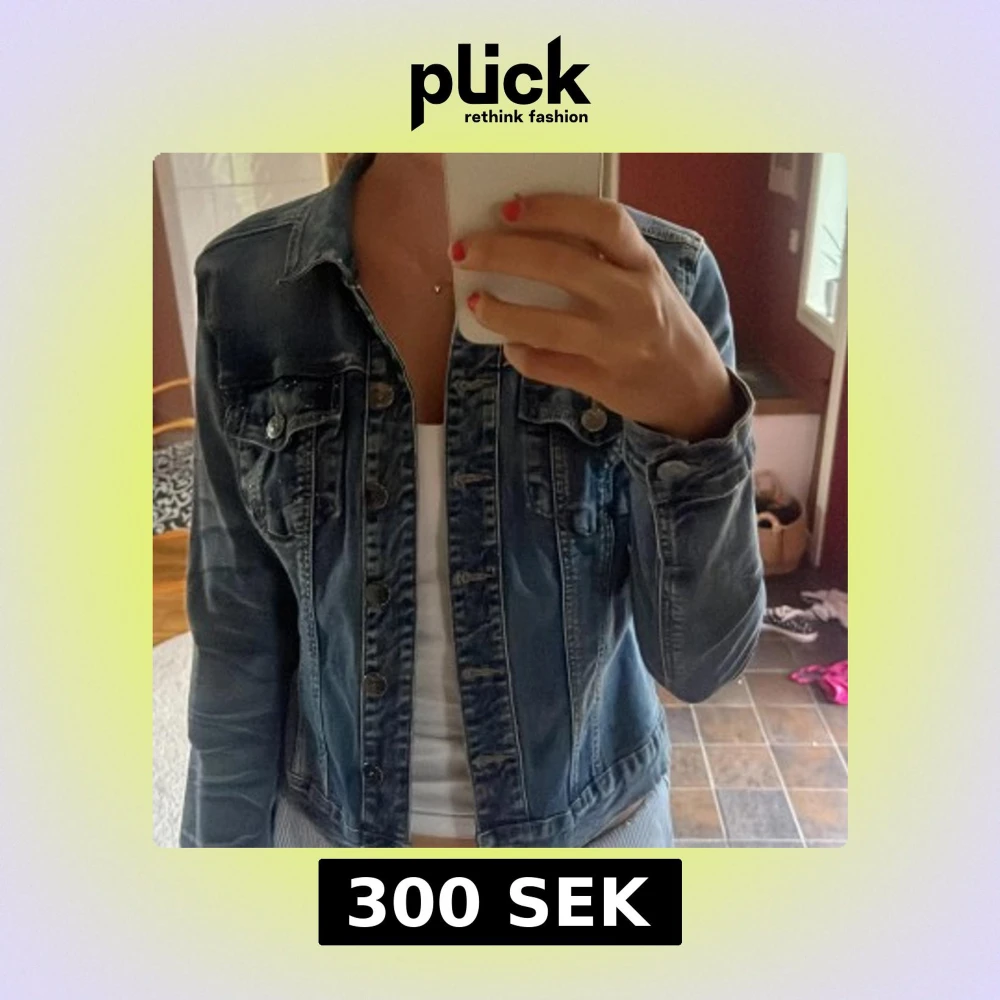 Snygg blå jeansjacka från Culture med silvriga knappar och paljetter på ena bröst fickan och över axlarna där bak💗