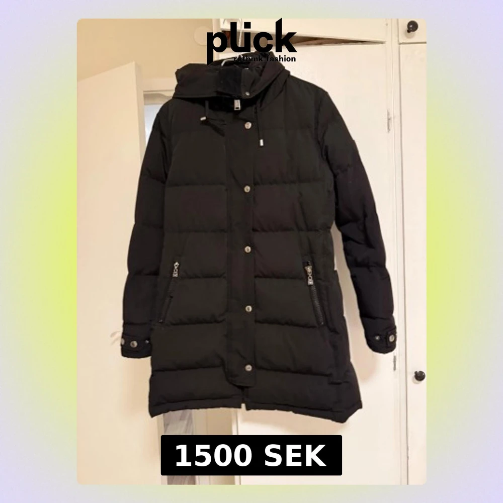 Säljer en svart lång dunjacka från Hollies i storlek 38. Jackan har huva med snörning, dragkedja och knappar framtill samt två fickor med dragkedja. Snygg quiltad design och detaljer vid ärmslut. Perfekt för kalla dagar, har även kemtvätta den så den är helt ren
