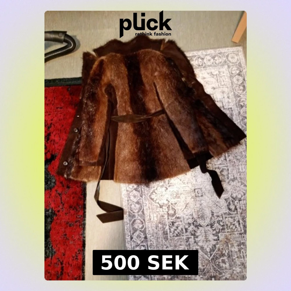 Säljer en brun pälsjacka med snyggt bälte i midjan och knappar framtill. Jackan har lång ärm och är fodrad med brunt tyg på insidan. Perfekt för dig som vill sticka ut med en cool vintage-look.
