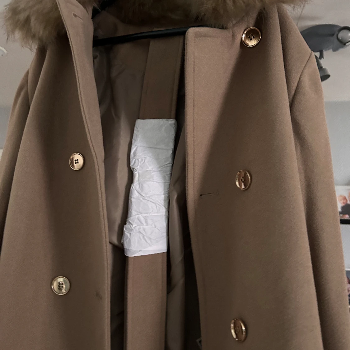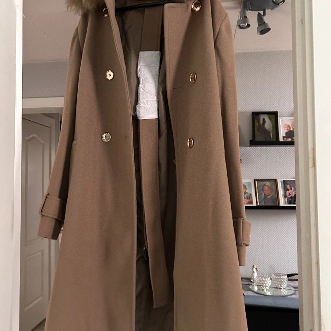 Modellen heter Margo o är lång .Helt ny lappar kvar .Pälsen på kragen går att ta bort , ej äkta