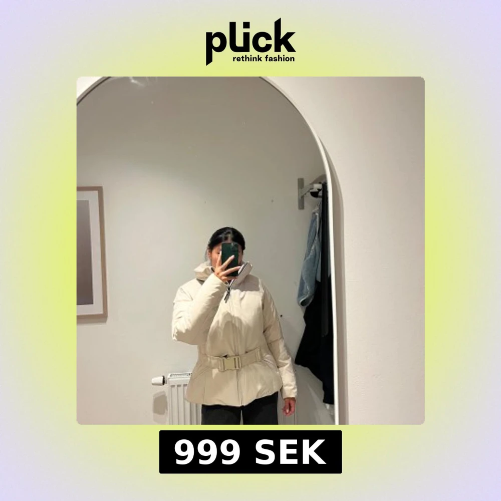 Snygg beige pufferjacka från Aímn med hög krage, bälte i midjan och dragkedja framtill. Jackan har en mjuk, pälsliknande insida som gör den extra mysig och varm. Perfekt för kalla dagar och ger en clean, modern look. Jag köpte jackan i December och den är använd 1 gång på en skidsemester
