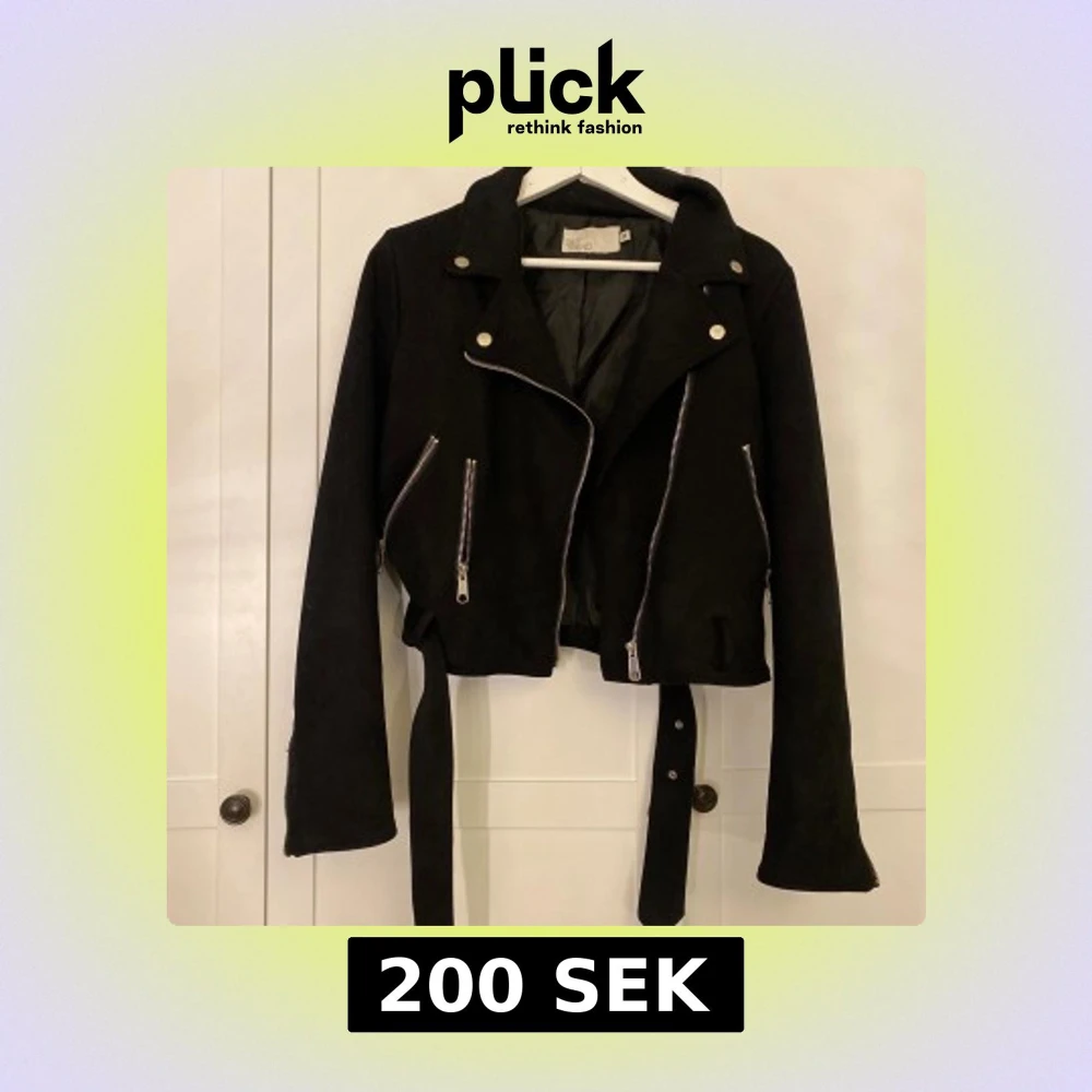 Snygg svart bikerjacka från NLY Trend med croppad passform, silvriga dragkedjor och bälte i midjan. Jackan har långa ärmar med dragkedjor vid ärmsluten och coola detaljer i metall. Perfekt för dig som vill ha en edgy look.