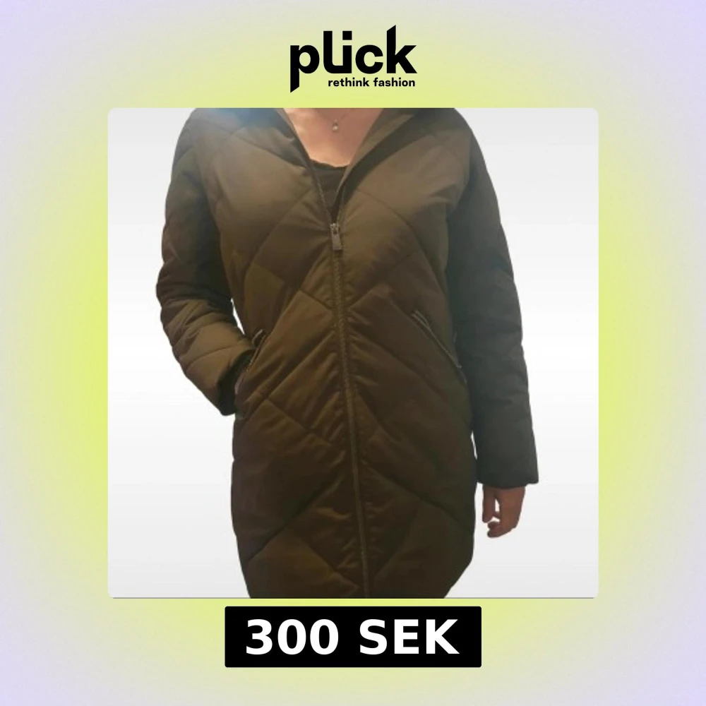 Säljer en lång, quiltad pufferjacka från Five Seasons i mörkgrönt. Jackan har dragkedja framtill, två sidofickor med dragkedja och ett snyggt märke på ärmen. Insidan är fodrad med mjuk fleece för extra värme. Perfekt för kalla dagar.