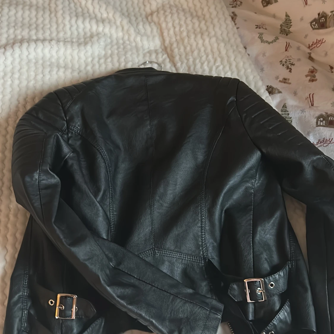Snygg svart skinnjacka från Voyelles med dragkedjor och knappar. Jackan har en cool bikerstil med detaljer som bälten och quiltade partier på axlarna. Perfekt för en edgy look!