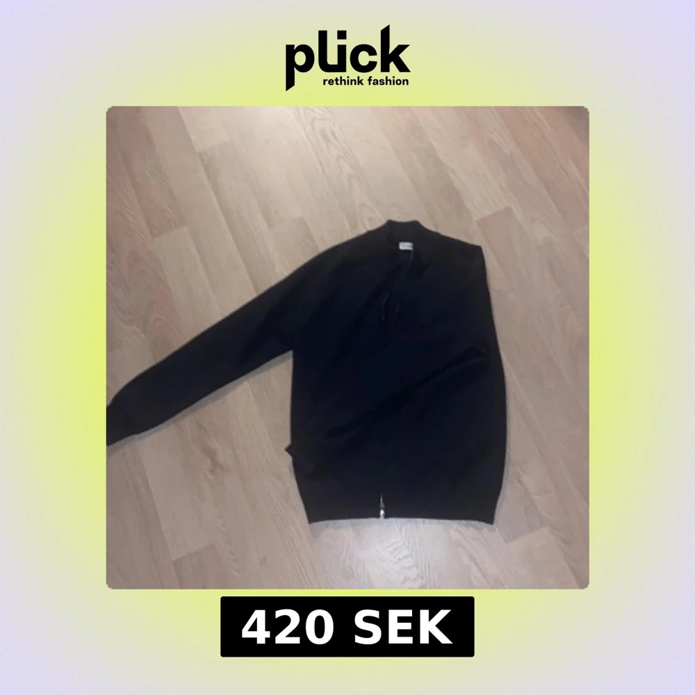 Säljer en stilren svart hoodie med dragkedja. Perfekt för en avslappnad look. Den har en normal passform och är tillverkad i ett mjukt material för extra komfort.