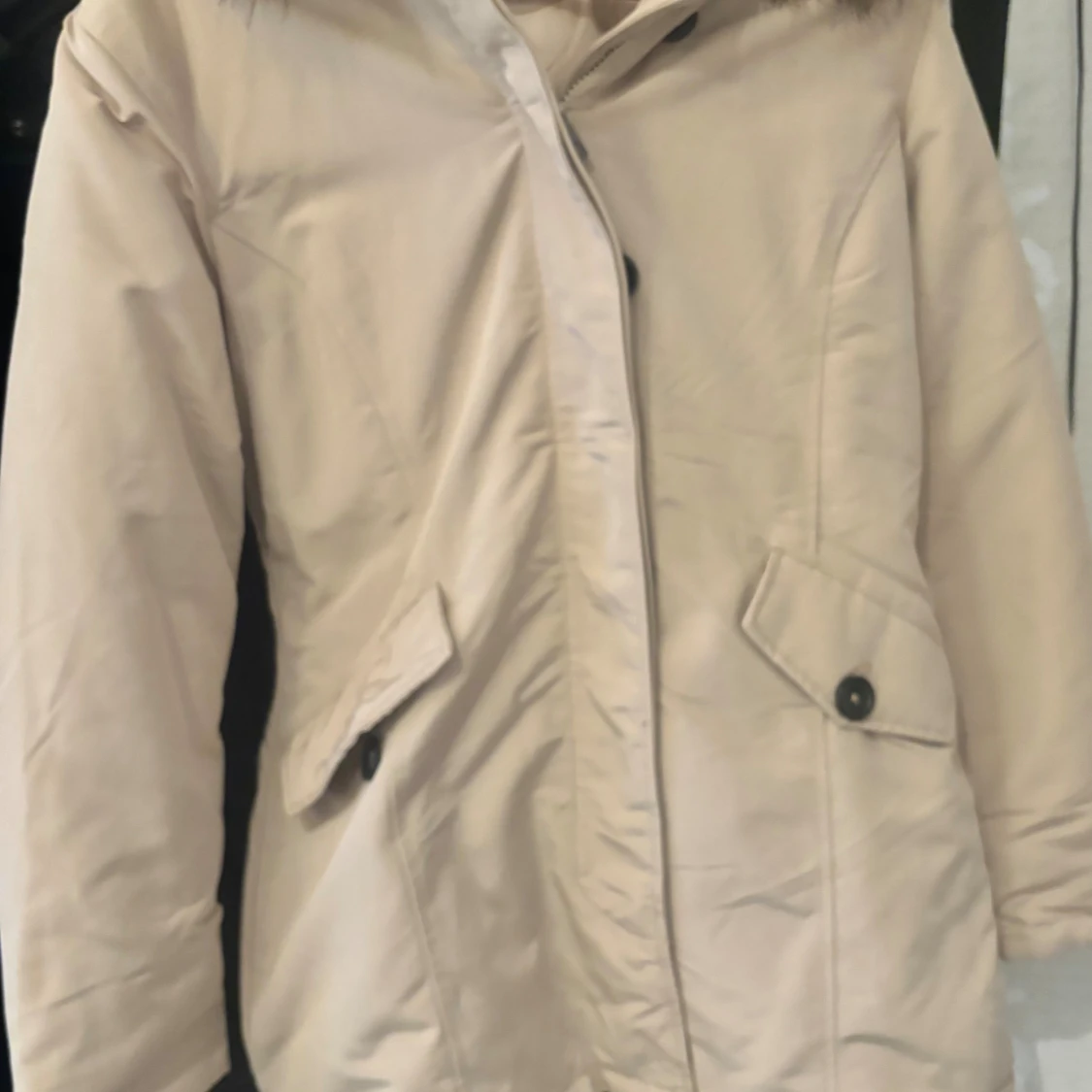 🍁🍂Snygg beige duvnjacka från Elara med huva och fuskpäls. Jackan har långa ärmar, knappar framtill och två fickor med lock och knapp. Perfekt för kyliga dagar och har en klassisk, stilren look. Nypriset i butik:1000sek. Helt ny och oanvänd. Passa på passa på och fynda. Bra 🍂🍁💕