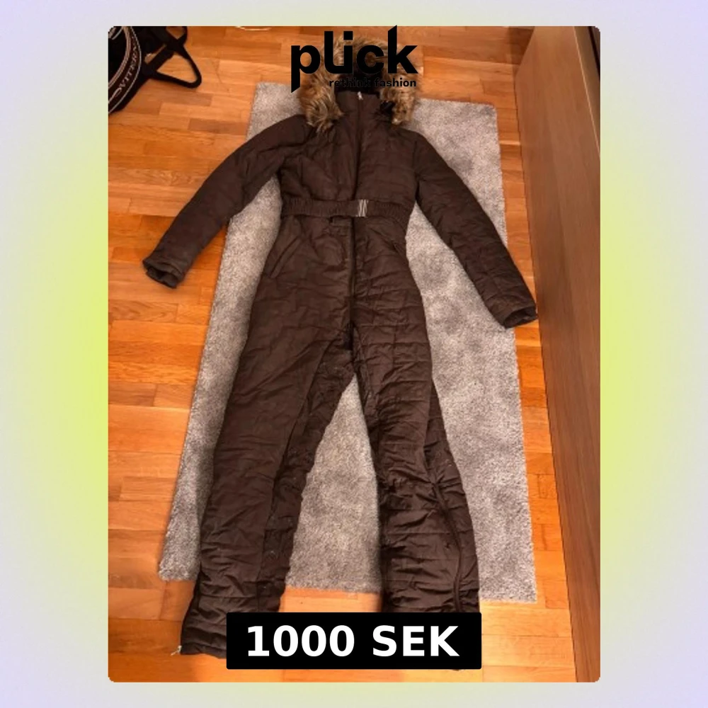 Säljer en brun quiltad overall med huva som har en snygg pälsdetalj. Overallen har dragkedja framtill, bälte i midjan och dragkedjor vid bensluten. Perfekt för kalla vinterdagar i stallet när du vill hålla dig varm!