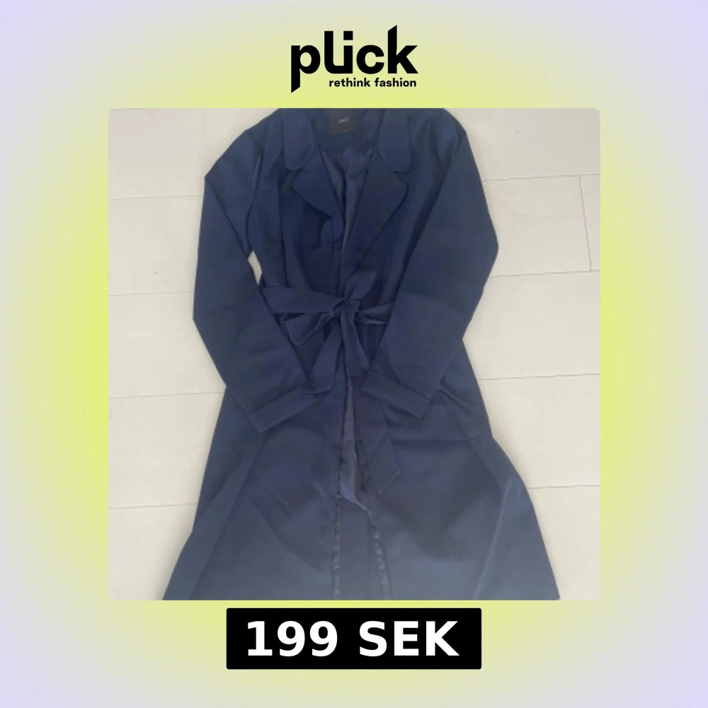 Snygg mörkblå trenchcoat från Y.A.S med klassisk krage och knytbälte i midjan. Jackan har lång ärm och är tillverkad i ett slätt, syntetiskt material med lite glans. Perfekt för dig som gillar stilrena och tidlösa plagg. Helt ny aldrig använd!