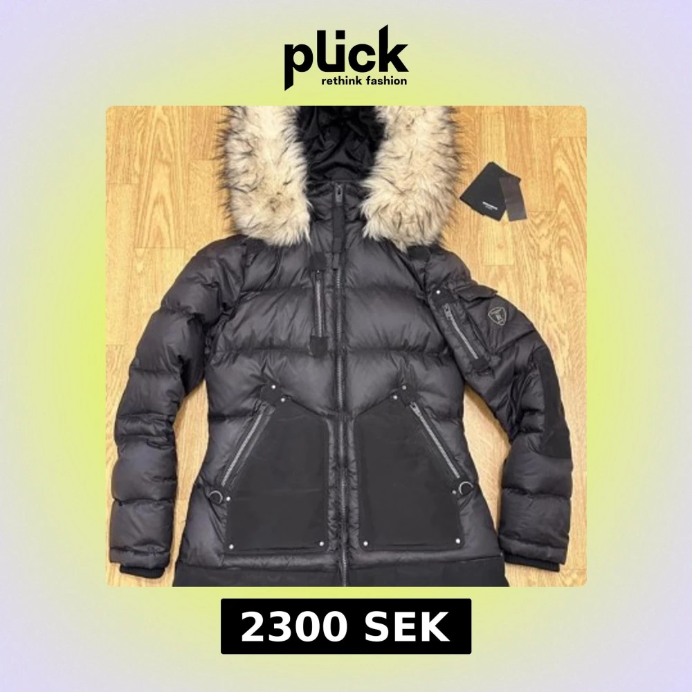 Snygg svart dunjacka från Rockandblue med stor huva kantad av ljus fuskpäls. Jackan har flera dragkedjor, stora fickor framtill och en patch på ärmen. Perfekt för kalla dagar med sin vadderade design och coola detaljer. Nyskick, kvitto finns, använd ca 3 gånger, nypris 4999kr.