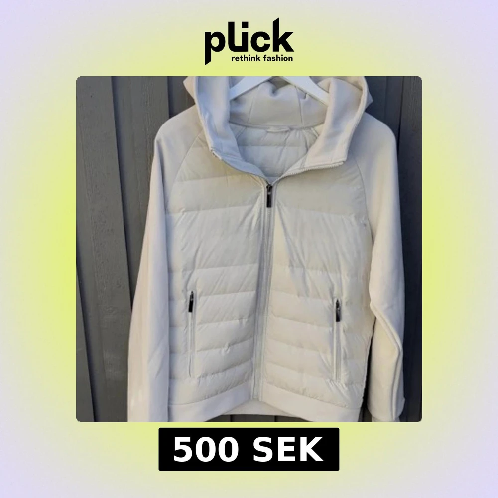 Säljer en stilren beige quiltad jacka med huva. Jackan har dragkedja framtill och två praktiska fickor med dragkedjor. Perfekt för kyligare dagar med sin pufferdesign som håller värmen.