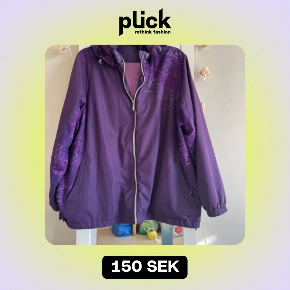 Säljer en snygg lila vindjacka från Umbro. Den har ett coolt blommönster i en mörkare nyans av lila och en praktisk dragkedja framtill. Jackan är perfekt för vår och höst med sin lätta och bekväma passform. Den har långa ärmar och en justerbar huva för extra skydd mot vinden.
