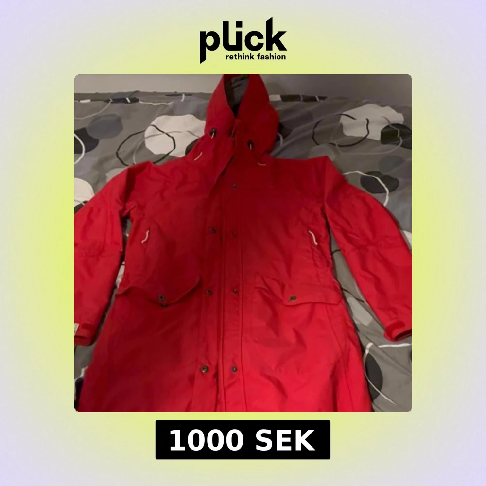 Säljer en röd parkas från Didriksons i storlek 38. Jackan har huva med snörning, stora fickor med knappar och dragkedja framtill. Perfekt för kalla och blåsiga dagar, med klassisk Didriksons-brodyr på bröstet och Storm System-teknologi.