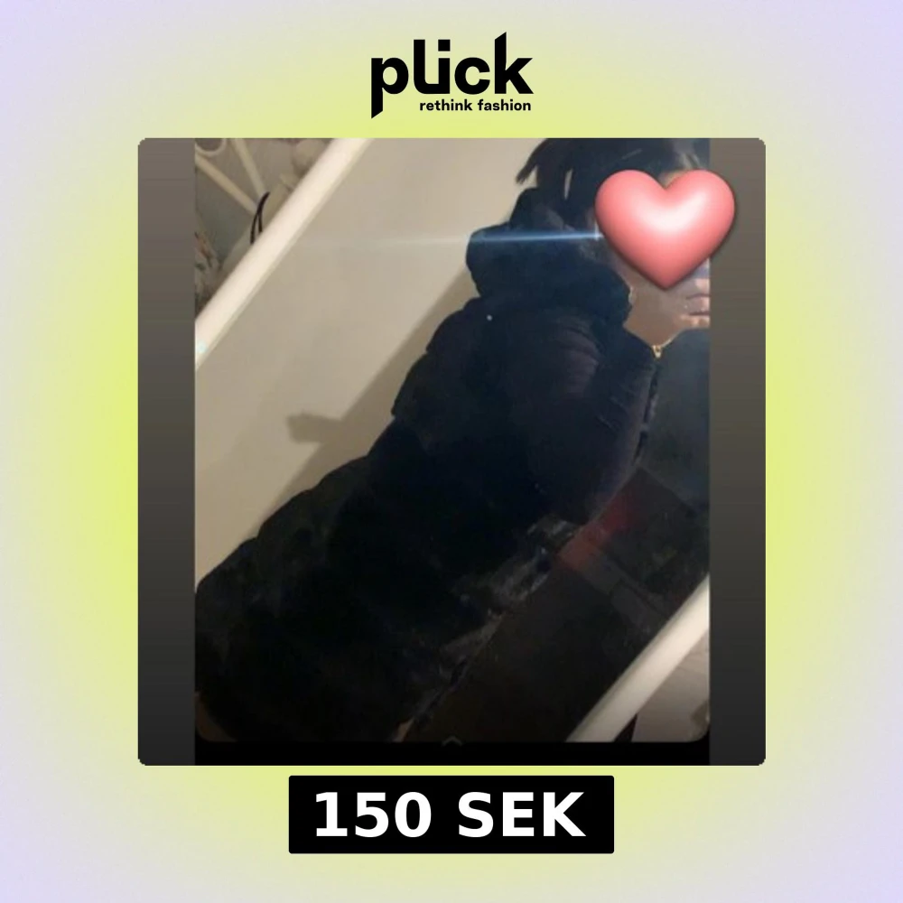 Säljer en svart pufferjacka med huva som är perfekt för kalla dagar. Jackan är lång och har en quiltad design som ger extra värme. Stilren look som funkar till många outfits och har långa ärmar för maximal komfort.