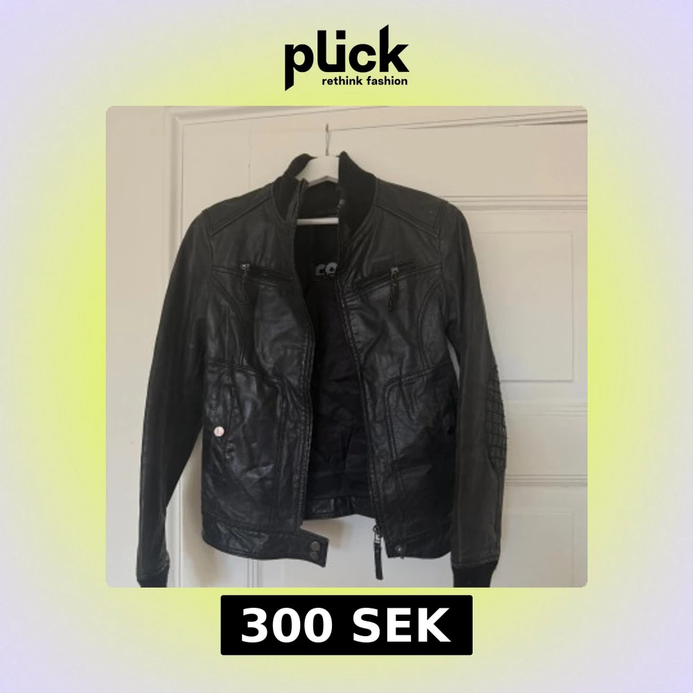 Svart skinnjacka från Conbipel med coola quiltade detaljer på armbågarna, ribbad krage och muddar. Jackan har flera fickor med dragkedja och tryckknapp, samt snygga sömmar som ger en schysst form. Perfekt för dig som vill ha en edgy look.