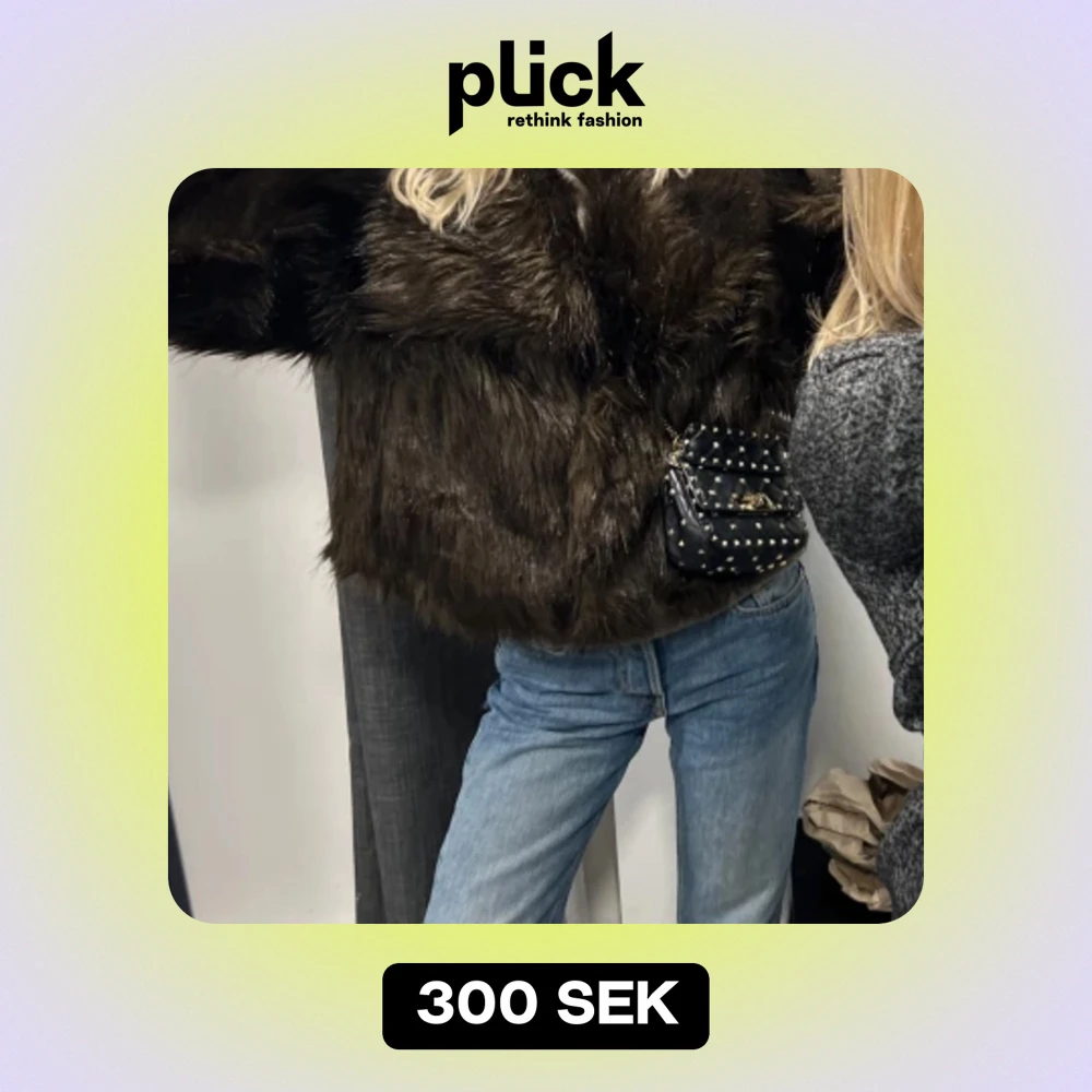 Cropppad faux fur jacka i mörkbrun färg. S/M