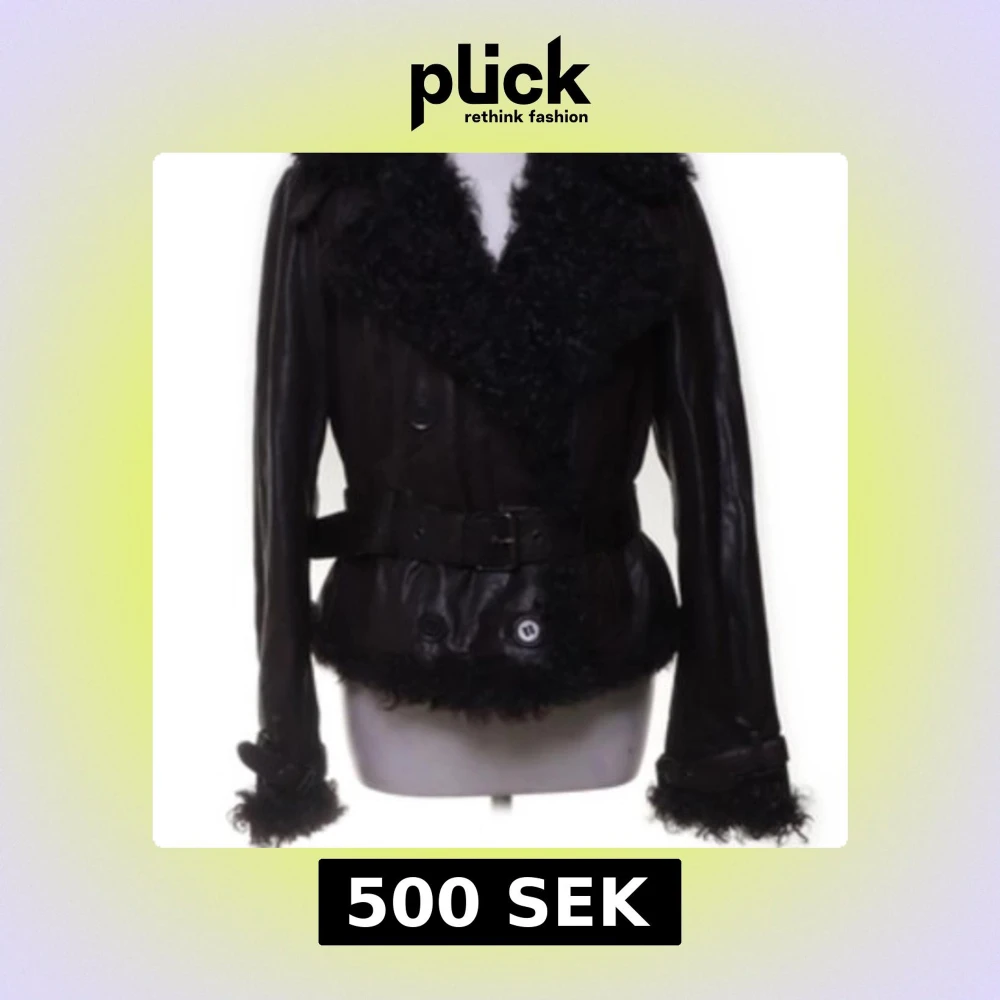 Snygg svart skinnjacka med pälsdetaljer på krage och ärmslut. Jackan har knappar och ett bälte i midjan för en stilren look. Perfekt för kyligare dagar.