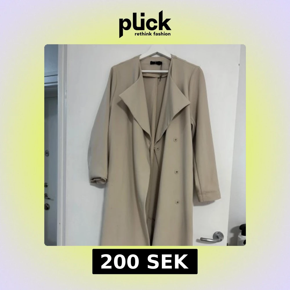 Snygg beige trenchcoat med knappar och bälte i midjan. Perfekt för höst och vår. Långärmad design med klassisk krage.