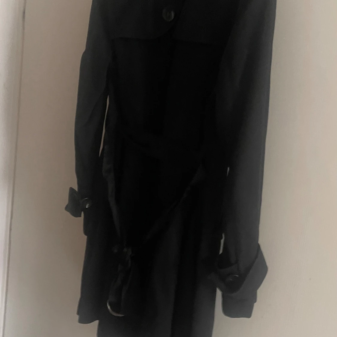 Stilren svart trenchcoat från Rocky LM med klassisk krage, stora knappar och bälte i midjan. Jackan har långa ärmar med snygga detaljer vid ärmsluten och fickor framtill. Perfekt för dig som vill ha en tidlös och clean look.