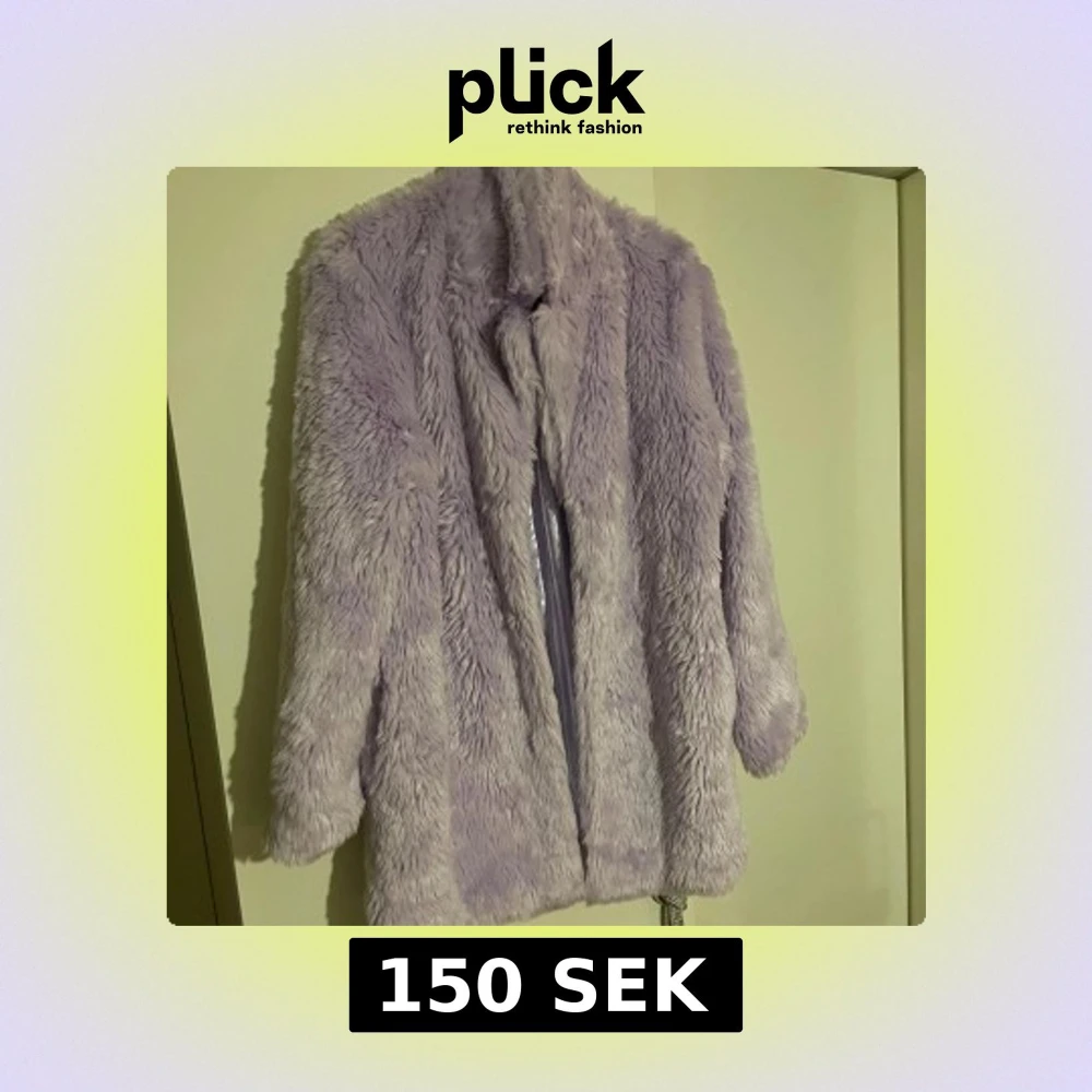 Säljer en supermjuk och fluffig ljuslila pälsjacka med lång ärm och hög krage.