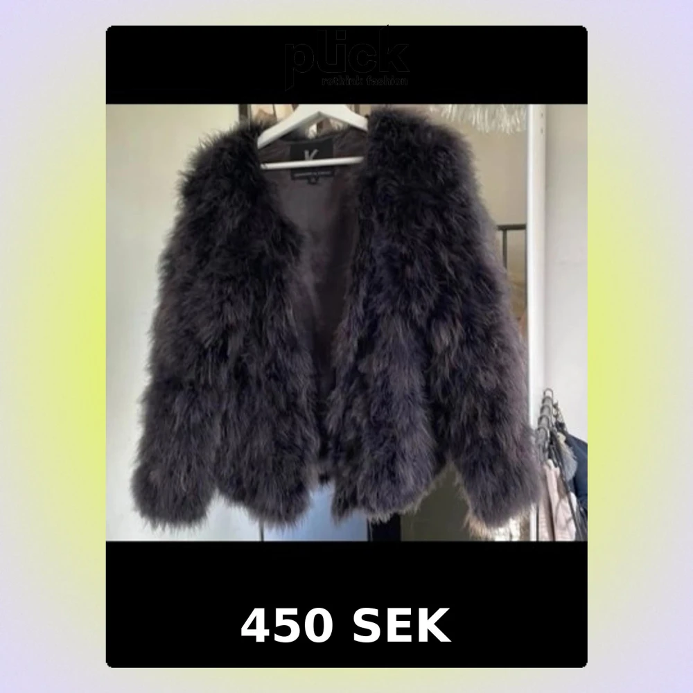 Fluffig svart pälsjacka från Kopenhagen by Andersen i storlek 40. Gjord av 100% fjäder och polyester. Perfekt för dig som vill sticka ut med en statementjacka och hålla dig varm under kyliga dagar.