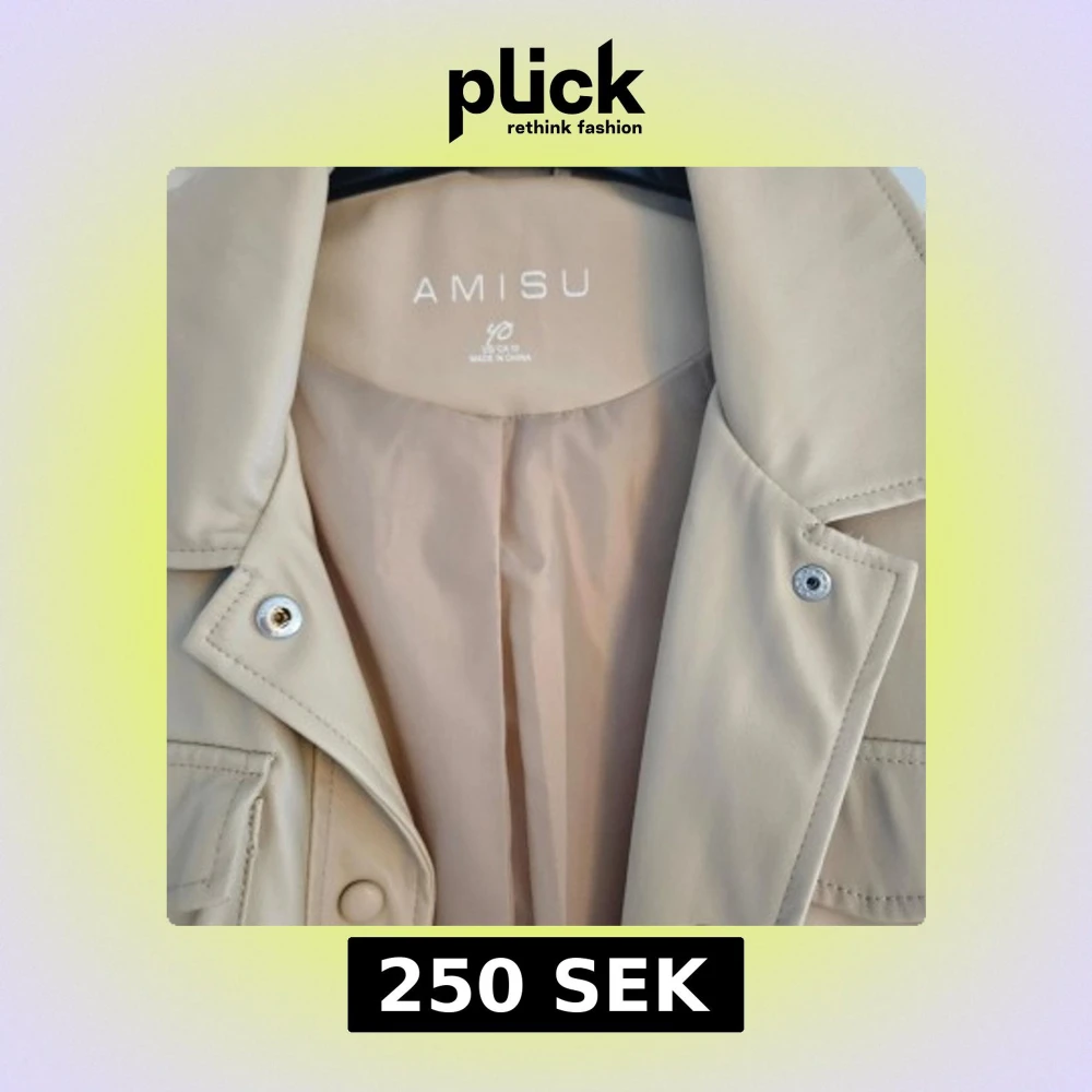 Snygg beige skinn jacka från Amisu med knappar och bälte i midjan. Jackan har långa ärmar och flera fickor framtill, vilket ger en stilren look. Perfekt för vår och höst!