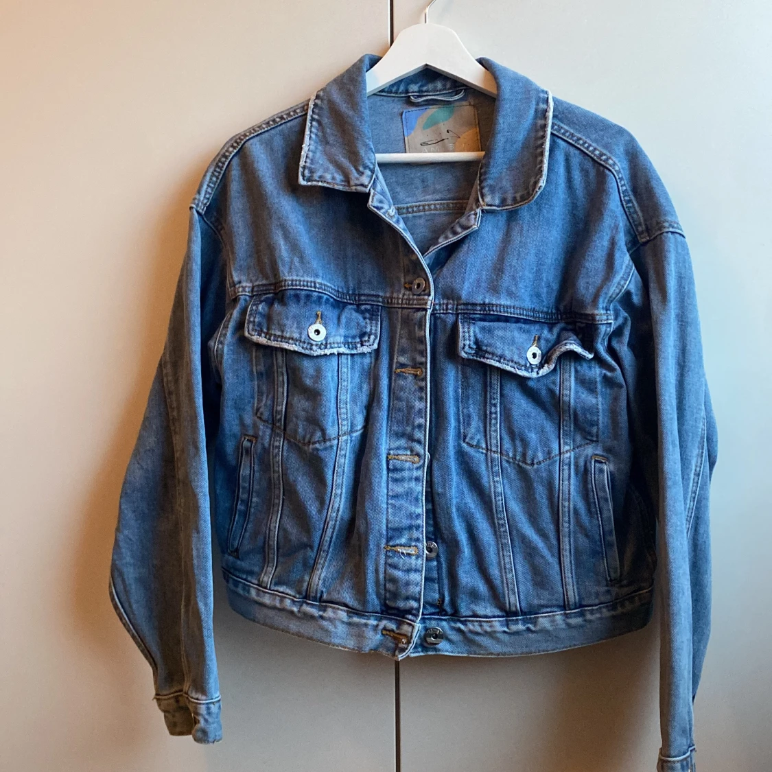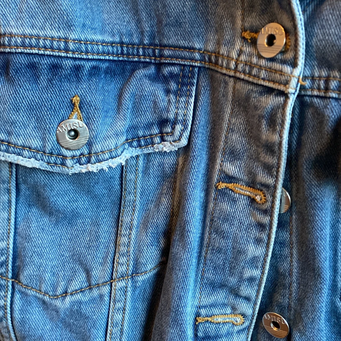 Säljer en klassisk blå jeansjacka från Amisu. Jackan har en normal passform med knappar framtill och två bröstfickor med knappstängning.