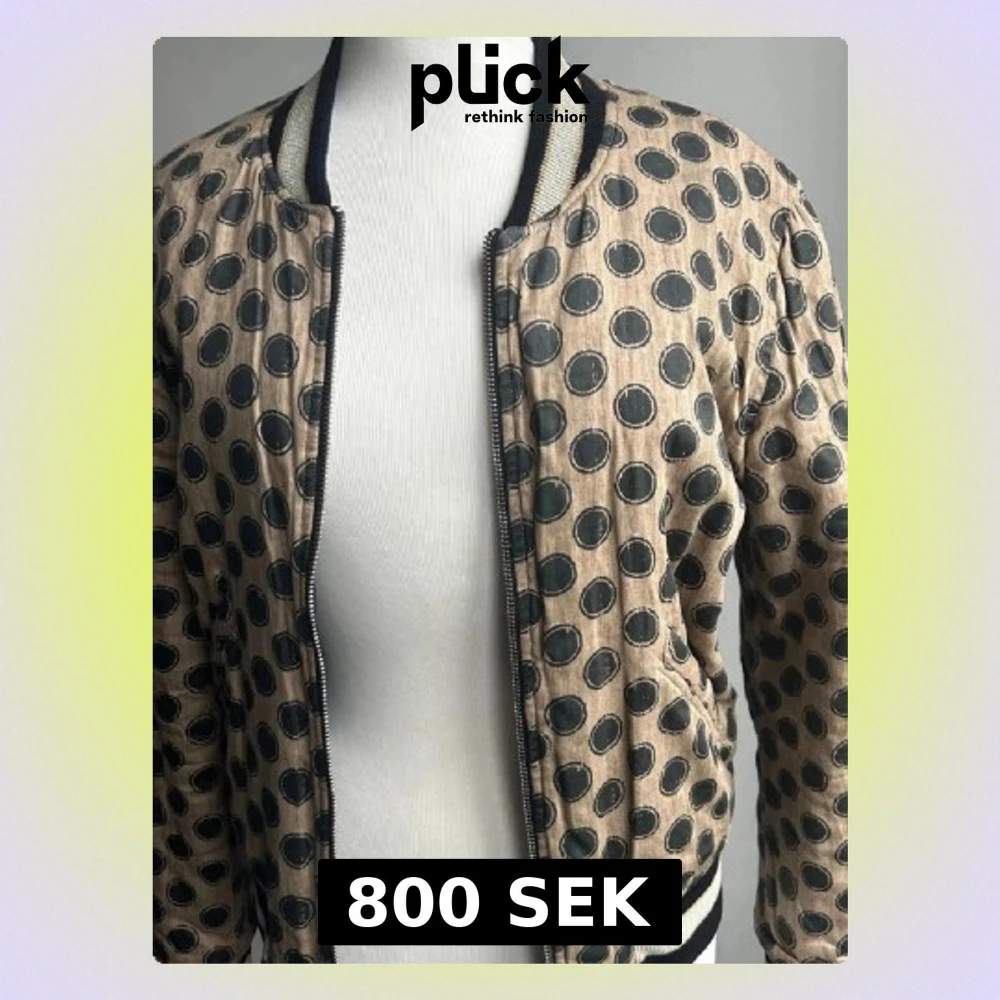 Säljer en beige bomberjacka från Isabel Marant Étoile med svarta prickar och broderad text 'Africa' i rött på ryggen. Jackan har dragkedja framtill, ribbade muddar och är tillverkad i bomull och polyester. Perfekt statement-plagg för dig som gillar unika detaljer.