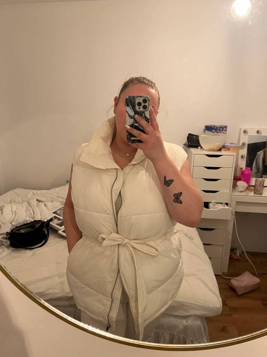 Säljer nu denna Nelly väst. Använd Max 2 gånger. Köpt sommaren 2022. Den är i bra skick men har fått lite smink märke vid kragen. (STOR I STORLEK) köpte den för 699kr men säljer för 400kr