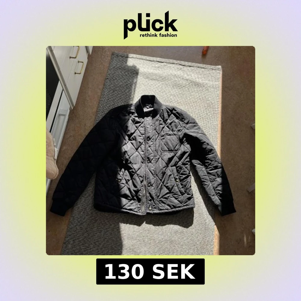 Quiltad svart bomberjacka med ribbad krage och muddar. Jackan har dragkedja och knappar framtill, samt fickor med tryckknappar. Snyggt rutmönster över hela jackan och långärmad modell. Perfekt för dig som gillar stilren och sportig look.