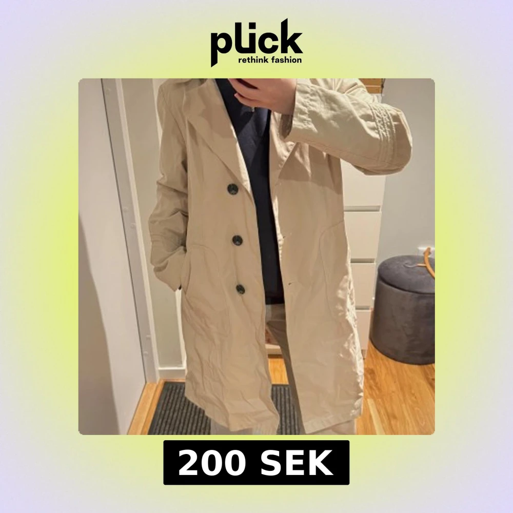 Snygg beige trenchcoat med knappar framtill. Perfekt för vår och höst. Klassisk design och normal passform.