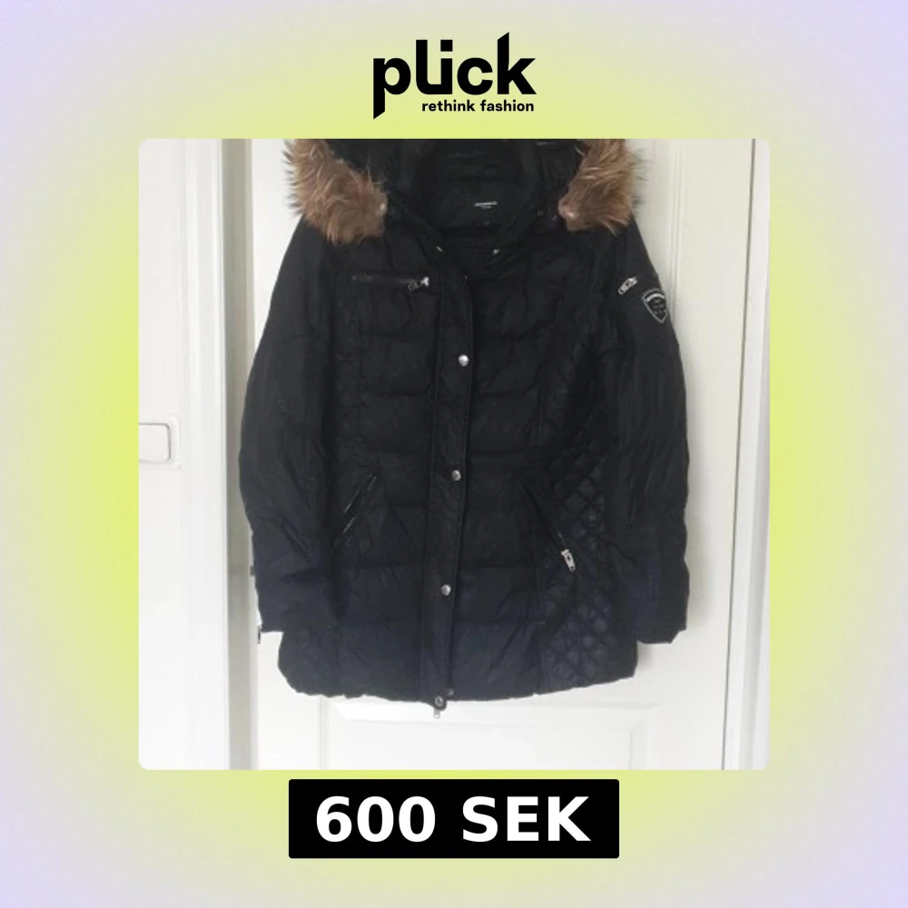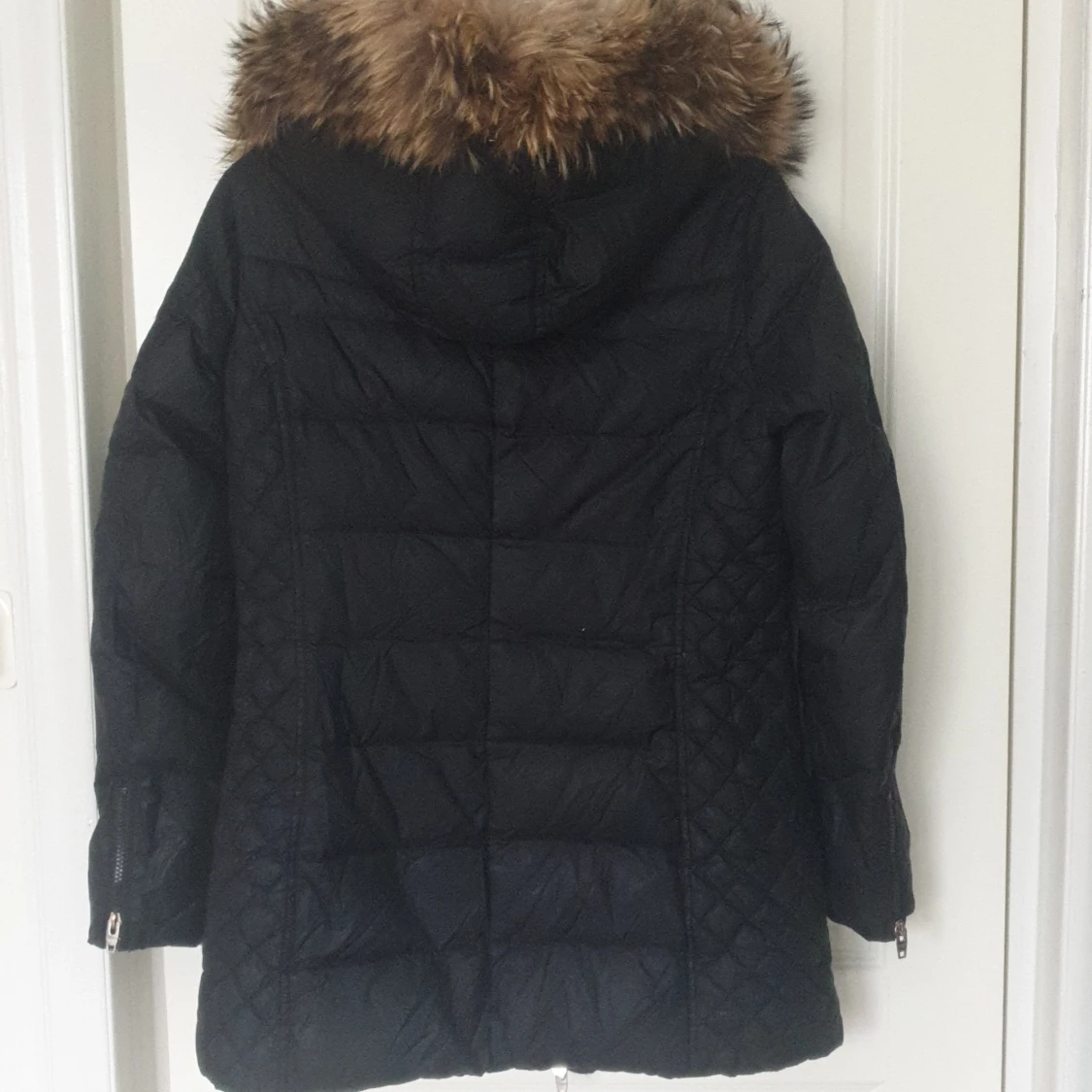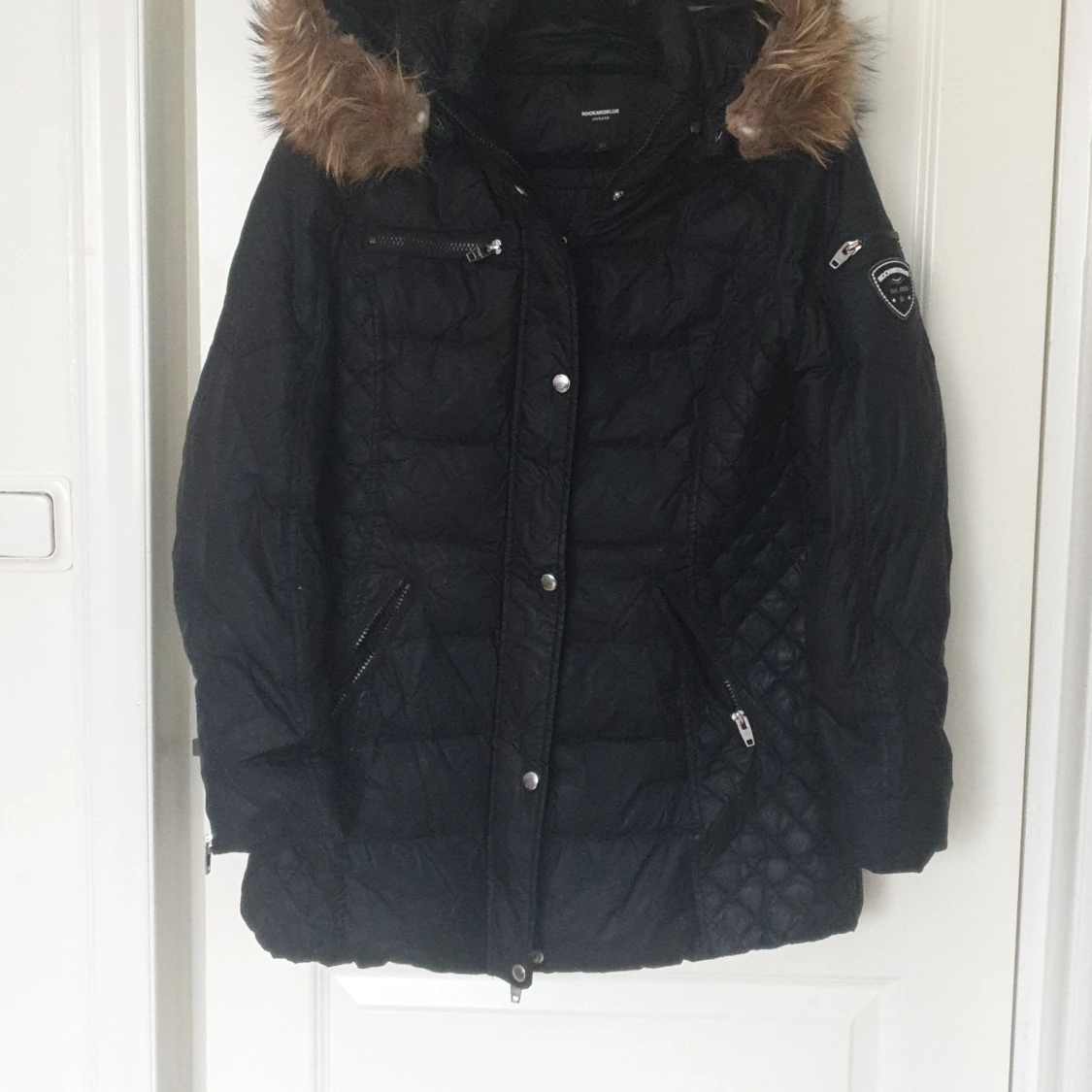 Snygg svart dunjacka från Rockandblue med äkta päls på huvan. Jackan har dragkedja och knappar framtill samt flera praktiska fickor. Perfekt för kyliga dagar. Använt en månad.