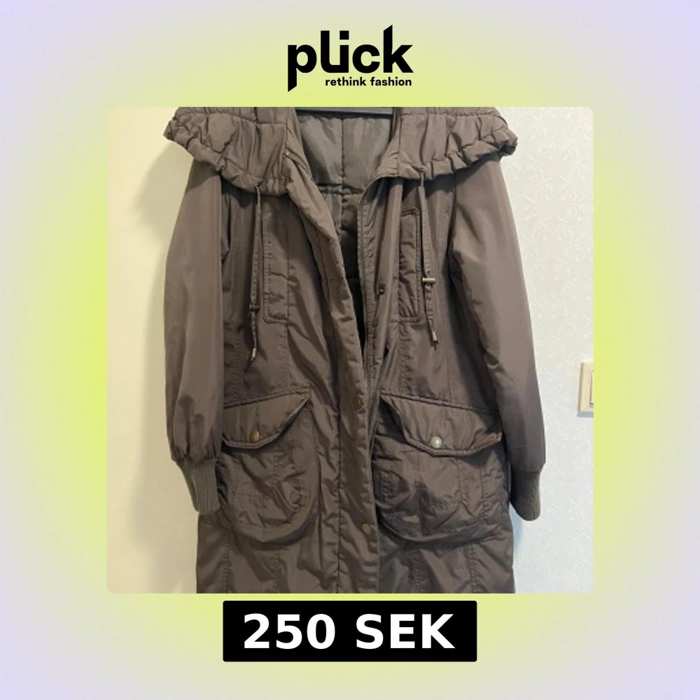 Parkajacka i brun nyans från XINT med stor huva, snörning och dragkedja framtill. Jackan har stora fickor med lock och tryckknappar, ribbade muddar vid ärmslut och justerbar midja baktill. Perfekt för kyliga dagar och har en avslappnad passform.