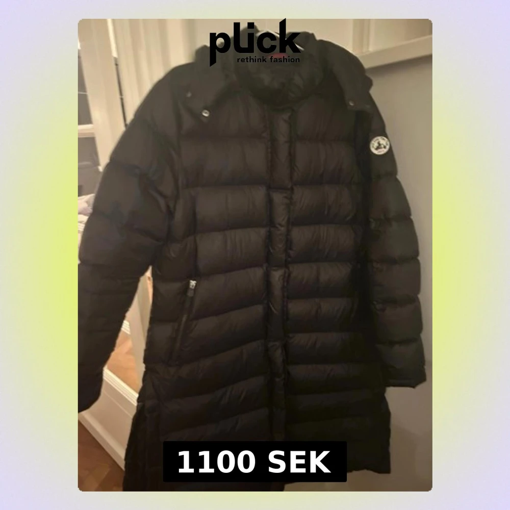 Säljer en svart lång dunjacka från JOTT med hög krage och huva. Jackan har quiltad design, dragkedjefickor och JOTT-logga på ärmen. Perfekt för kalla dagar och riktigt snygg till vintern.