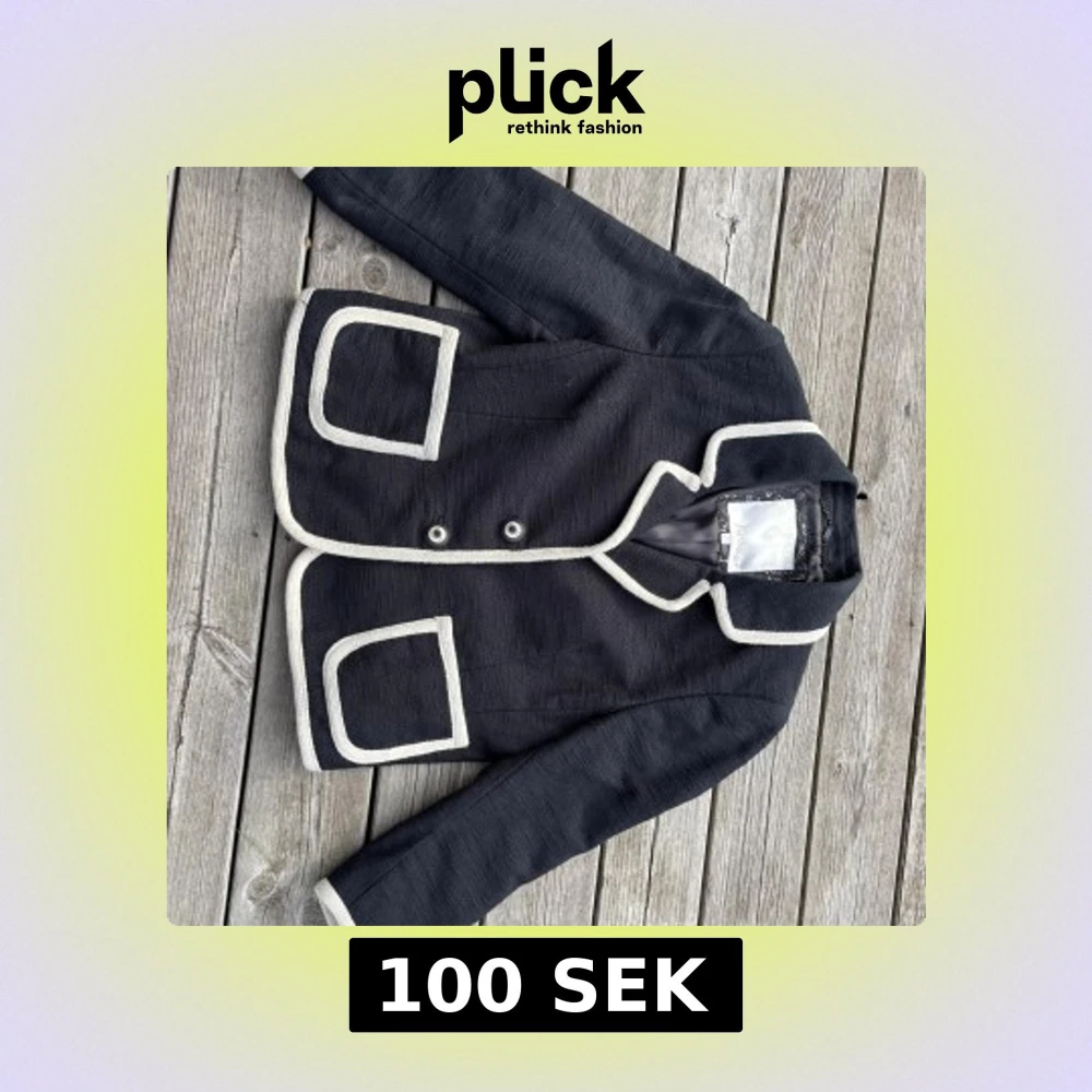 Stilren svart kavaj från InWear med kontrasterande vita kanter och två stora fickor framtill. Klassisk krage, knappar och snygg struktur i tyget. Perfekt för dig som vill ha en tidlös och trendig look.