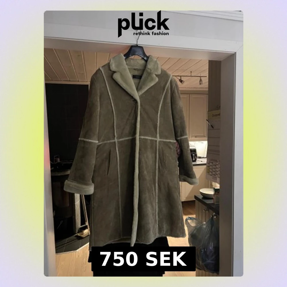 Säljer en lång mocka jacka från Saki med mjukt foder och markerade sömmar. Jackan har bred krage, uppvikta ärmslut och två fickor framtill. Perfekt för kalla dagar när du vill vara både varm och snygg.