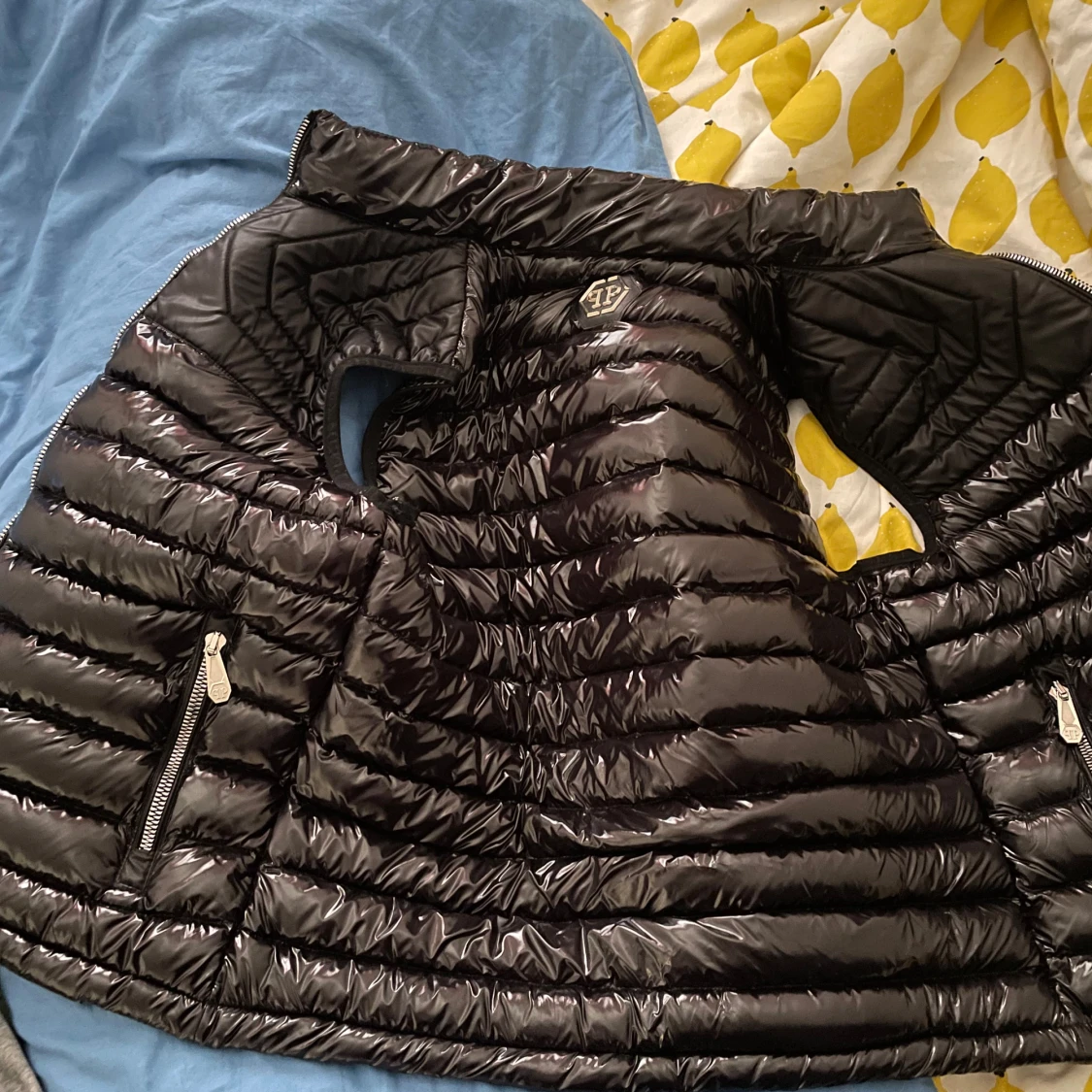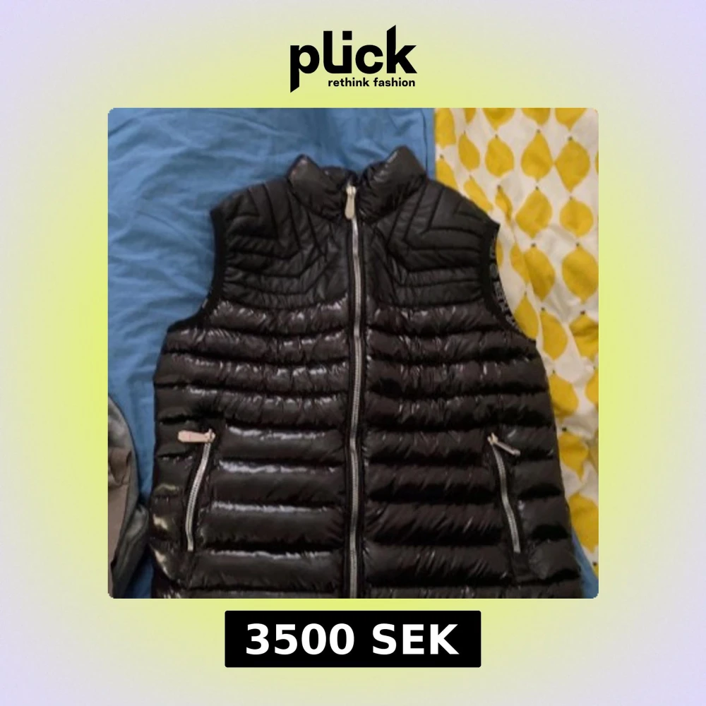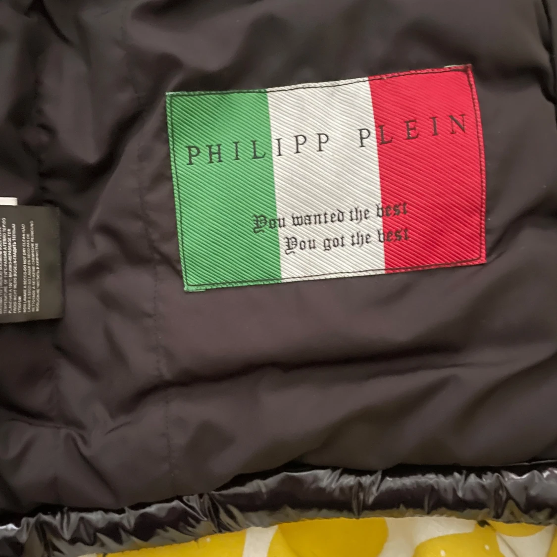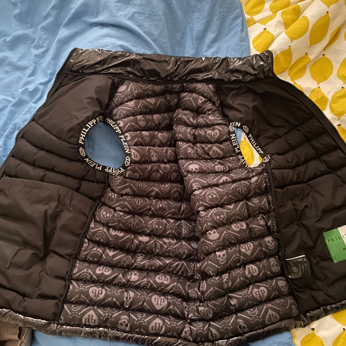 Snygg svart dunväst från Philipp Plein med glansig finish och dragkedja framtill. Västen har två fickor med dragkedjor och ett stilrent mönster på insidan. Perfekt för kyligare dagar. Finns även qrcode på insidan så man kommer till deras hemsida,