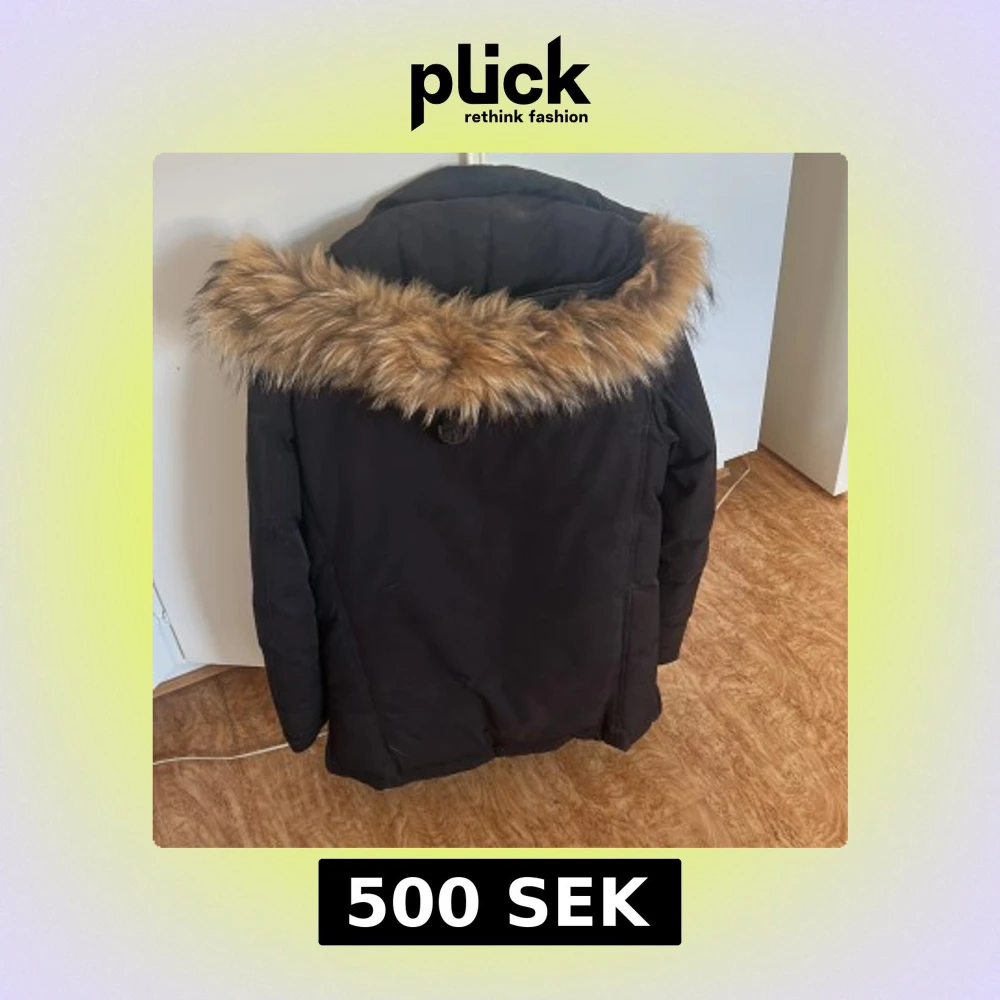 Svart jacka från Hollies med stor huva och fluffig päls i bruna toner. Jackan har dragkedja, flera fickor med snygga detaljer och en klassisk badge på ärmen. Perfekt för kalla dagar när du vill hålla stilen och värmen. (pris går att diskutera)