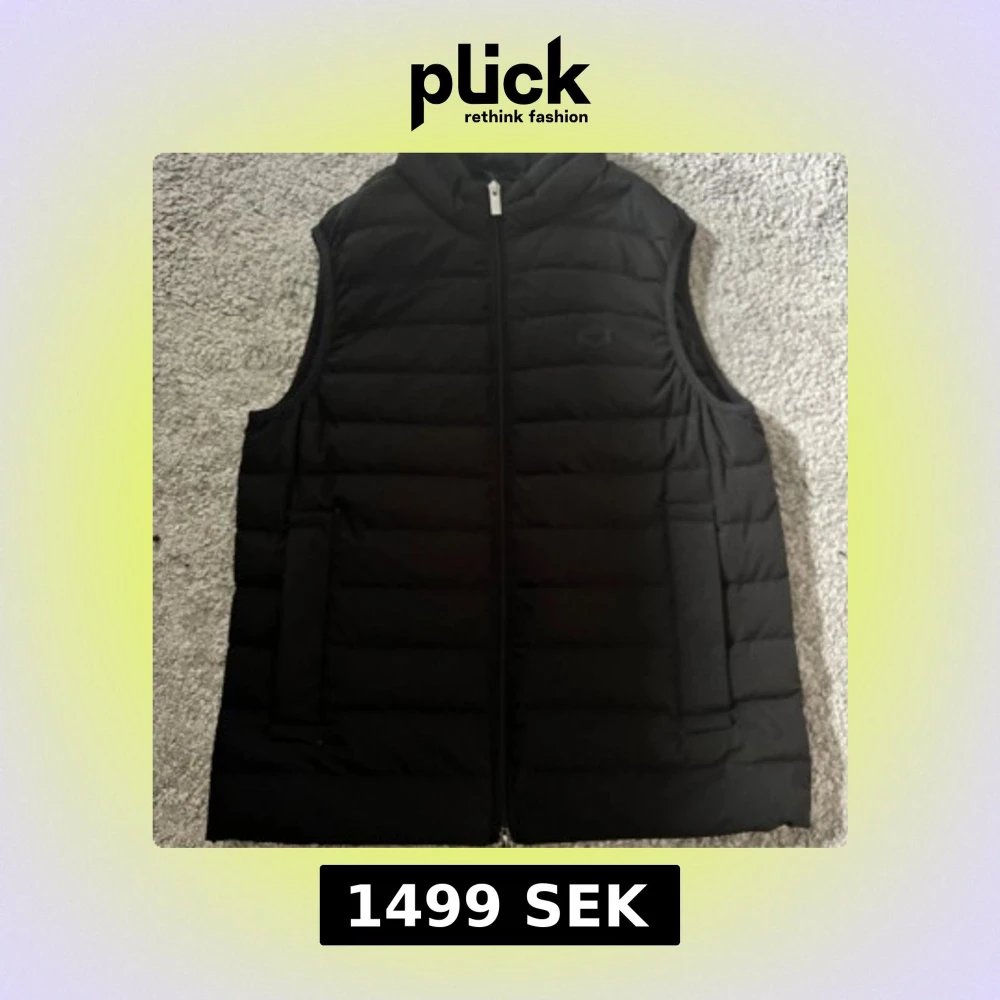 Säljer en svart dunväst från Emporio Armani Essentials med quiltad design och dragkedja framtill. Storlek är ca XS-S men rekommenderar S. Knappt använd då den är för liten. Nypris ca 3000.