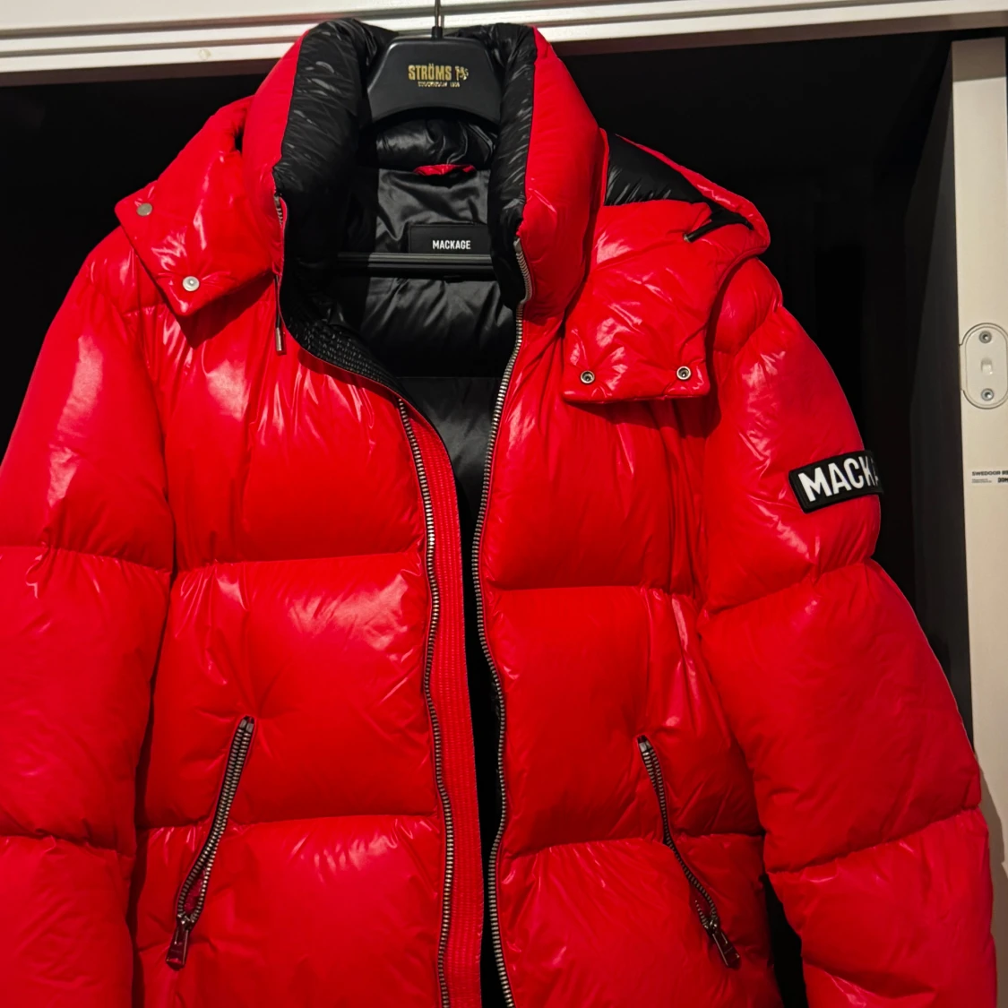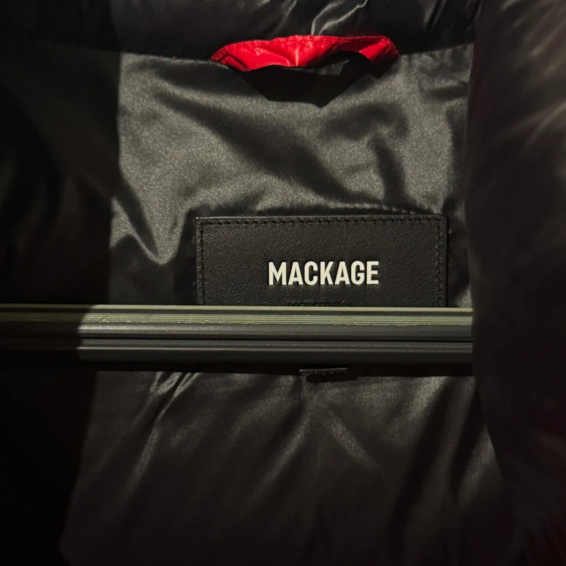 Lyxig och varm jacka från Mackage köpt på NK för ca 8000kr. Den är sparsamt använd och är generellt i fint skick. Det finns ett mörkt märke på jackan ovanför loggan (se bild 2), som måste tillkommit när jag gått emot något. Bara höra av dig om du har några frågor, svarar generellt snabbt! :)