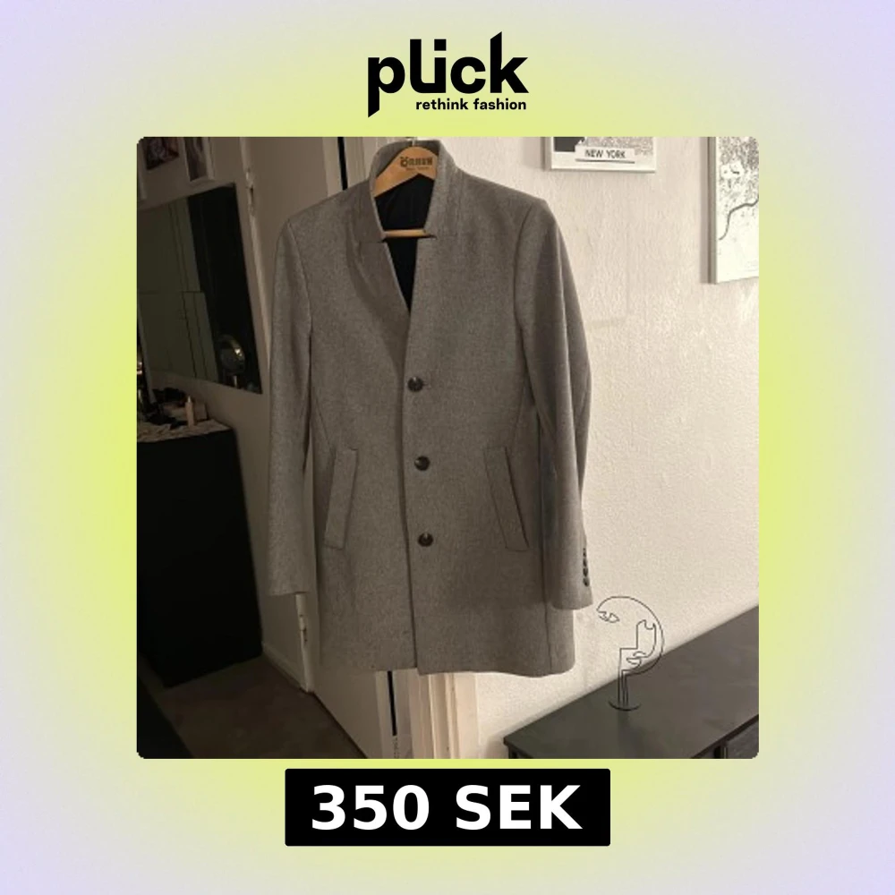 Snygg grå kappa med stilrena knappar framtill. Tillverkad i en ullblandning för en elegant look. Perfekt för kyligare dagar med sin långa design och praktiska fickor.
