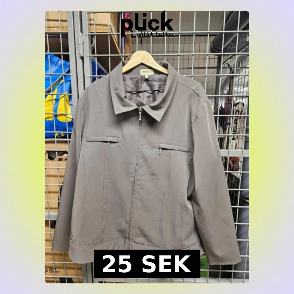 Snygg grå jacka från Amalia Collection i storlek 48. Jackan har rak passform, klassisk krage och dragkedja framtill. Två bröstfickor med dragkedja ger en clean look. Materialet känns mjukt och lätt, perfekt för vår och höst.