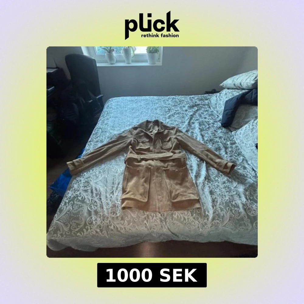 Snygg beige trenchcoat från Castor Solleu i mjuk mocka med slim fit-passning. Jackan har långa ärmar, stora fickor fram, knappar och ett bälte i midjan. Äkta läder vanligt pris 5000kr. Perfekt för dig som vill ha en klassisk och stilren look med lite edge.
