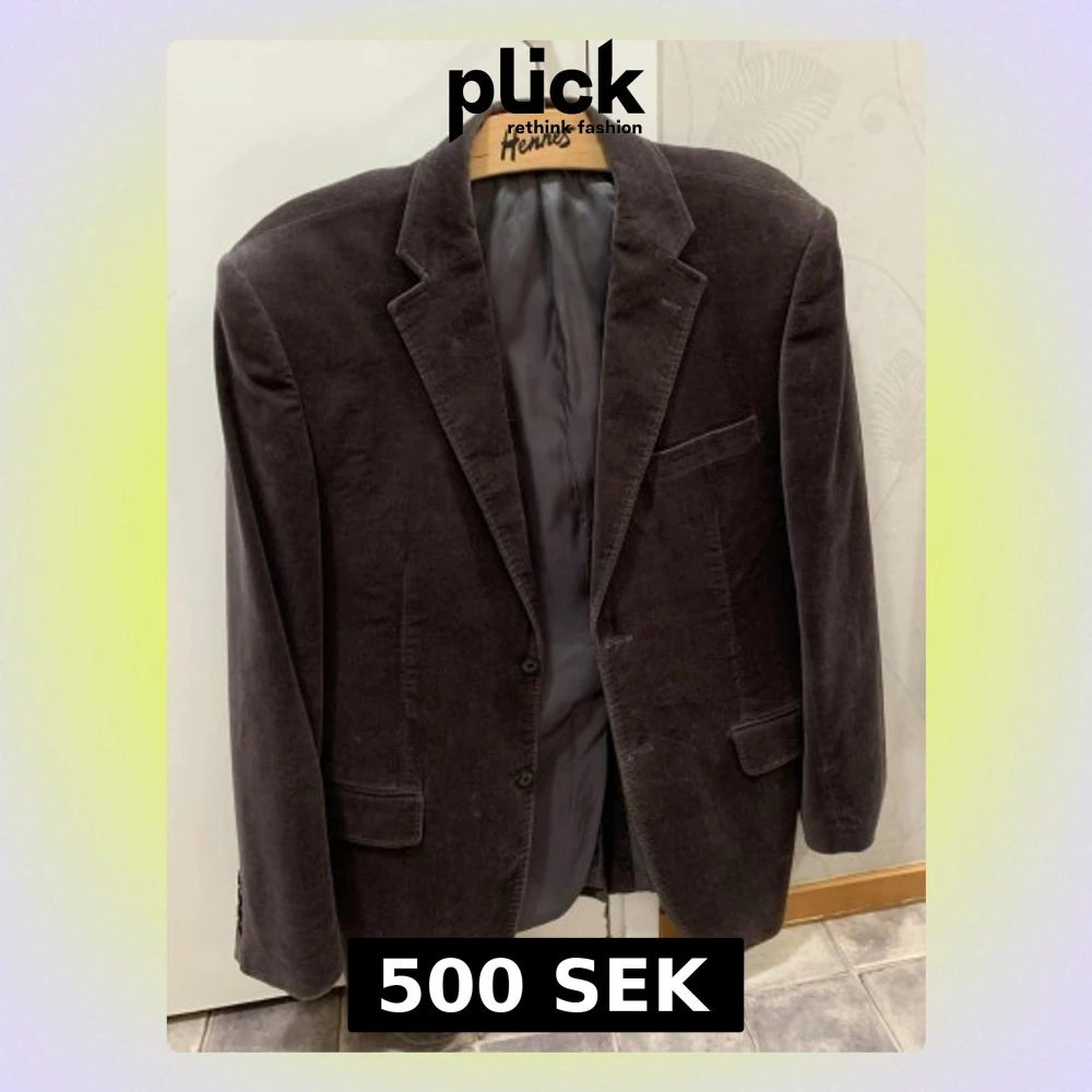 Säljer en grå/mörkbrun kavaj i sammets material från Batistini, storlek 52, storlek L. Klassisk modell med två knappar framtill, tre fickor och slits på baksidan. Yttertyget är 100% bomull och fodret är en mix av polyester och viskos. Perfekt för dig som vill klä upp sig och vill ha en stilren och bekväm look.