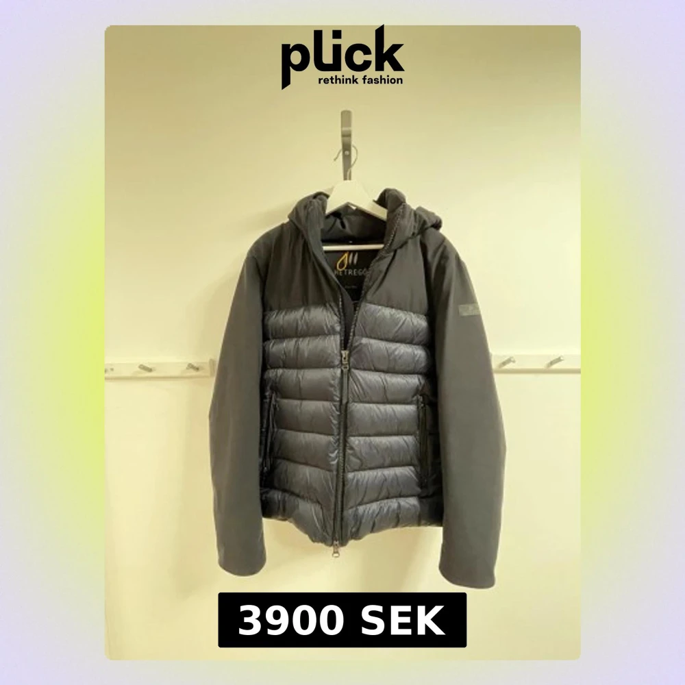 Snygg mörkblå dunjacka från Hetregó med huva och quiltad framsida. Jackan har dragkedja framtill, två sidofickor med dragkedja och en stilren design. Perfekt för kalla dagar och har en modern, clean look som funkar till de flesta outfits. Köpte denna förra vintern och använt den ett fåtal gånger.