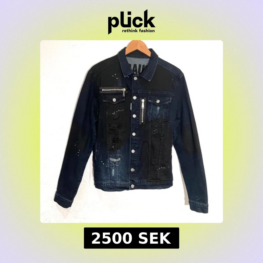 Stiliga Dsquared 2 distressed denim herr jacka tillverkad av högkvalitativt tyg med fokus på detaljer. Jeans jackan är med färgstänk, mörk indigoblå, klassiskt krage, knappar fram, framfickor med lock och dragkedjor samt innerfickor. - Ord. Pris 6699kr. - 98% bomull / 2% elastan