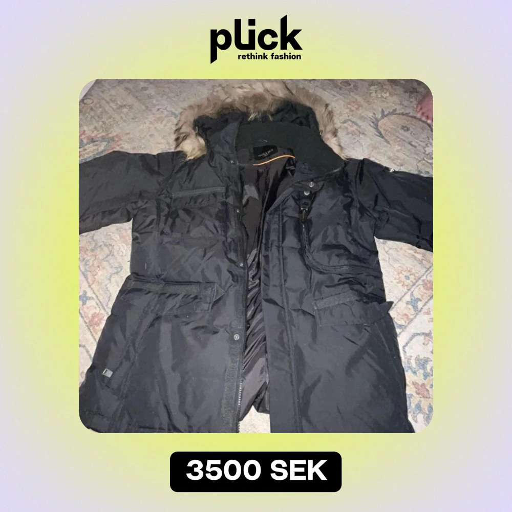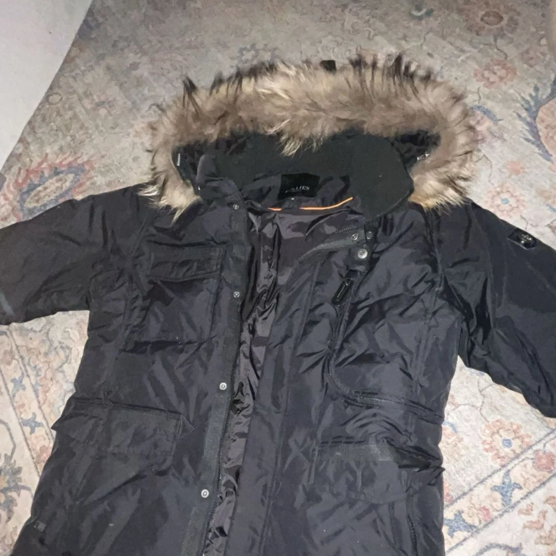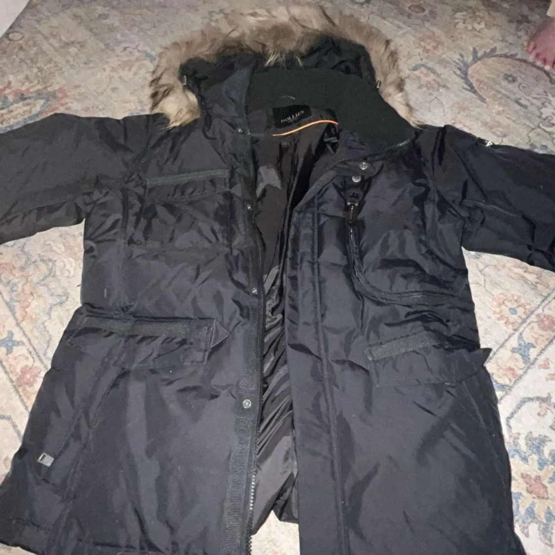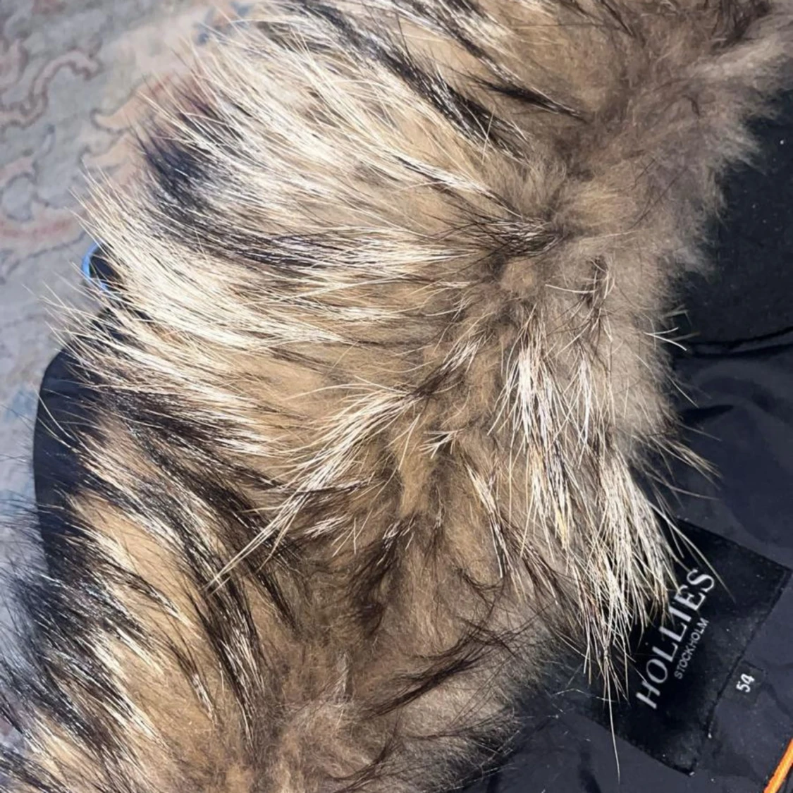 Säljer en svart vinterjacka från Hollies i storlek 54. Jackan har en mysig äkta pälsfodrad huva och flera praktiska fickor. Huvan och pälsen går att ta av, var för sig. Så varm och go.