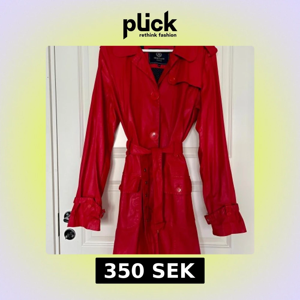 Säljer en snygg röd trenchcoat i vaxat material från Henri Lloyd med klassisk krage, knappar och bälte i midjan. Jackan har långa ärmar och två fickor framtill. Perfekt för att sticka ut i mängden under vår och höst! Storlek 6 vilket mostvarar XXL men passar en XL.