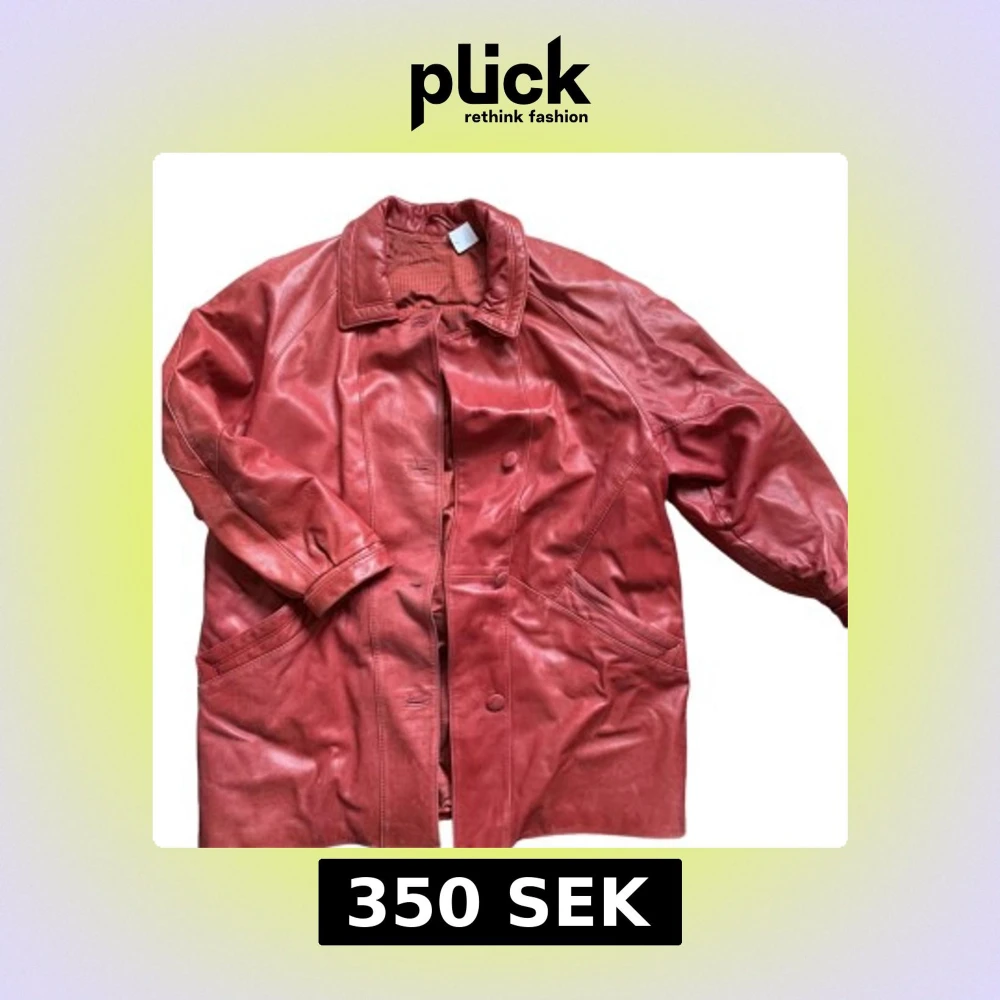 Röd skinnjacka med rutigt mönster inuti. I väldigt bra skick.