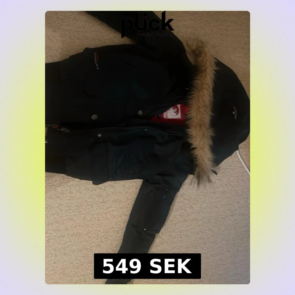 Snygg svart parkas från Canada med huva och fuskpälsdetalj. Jackan har flera fickor, dragkedja och knappar framtill samt ribbade muddar vid ärmsluten. Perfekt för kalla dagar och har en klassisk, tidlös look. Passar perfekt till barn och är jätte varm. DM för mer bilder. Orignal äkta jacka, användts endast två tre gånger
